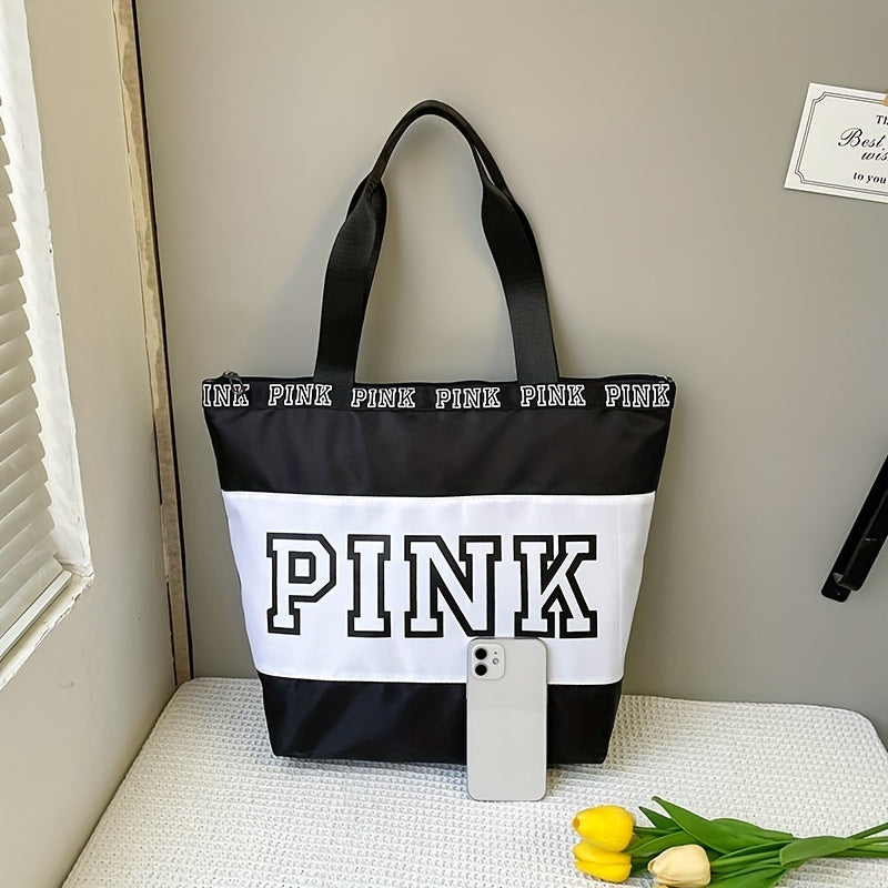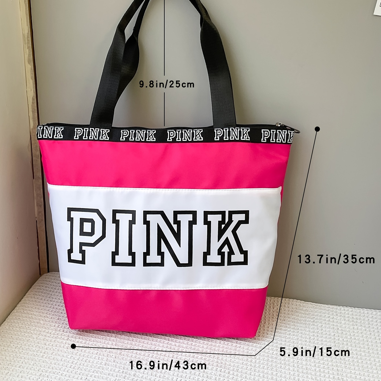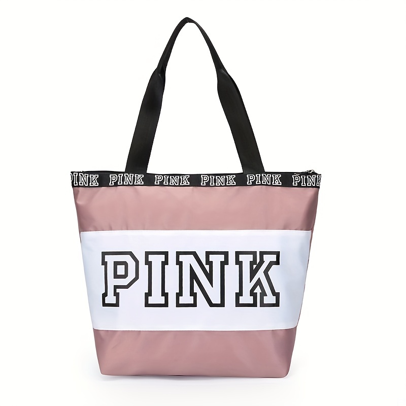レディース ビーチトートバッグ ピンク カラーブロック ショルダーバッグ カジュアル トラベル ラゲッジバッグ