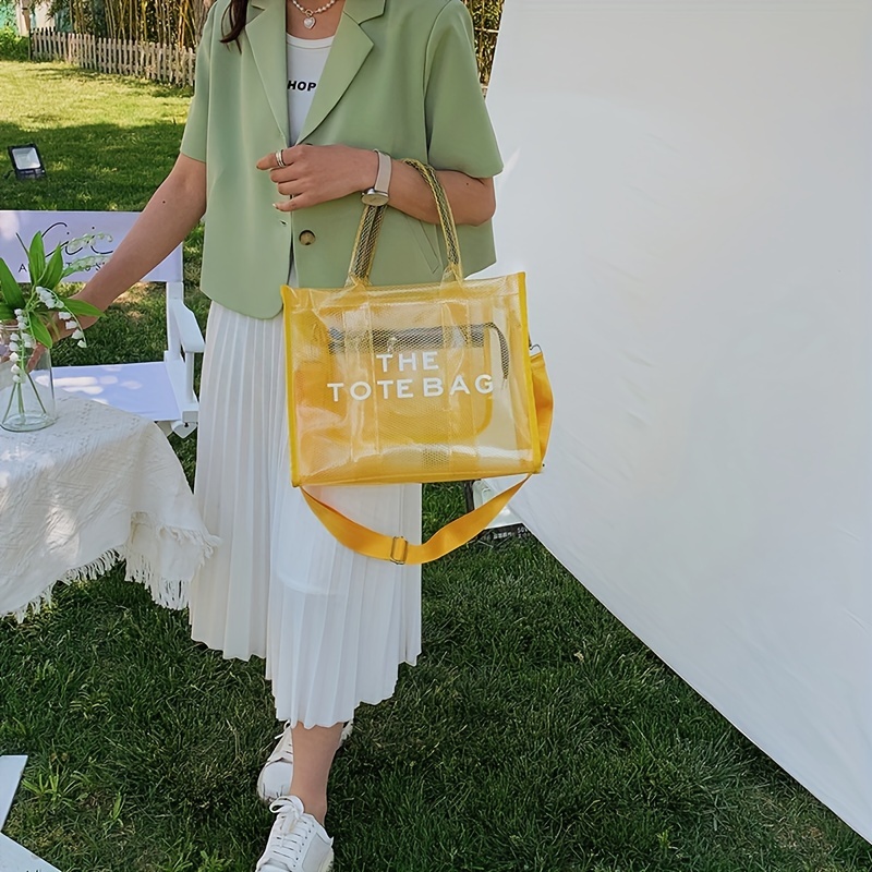 クリア トートバッグ レディース キャンディカラー PVCジェリーハンドバッグ トレンド サマービーチ ショルダーバッグ