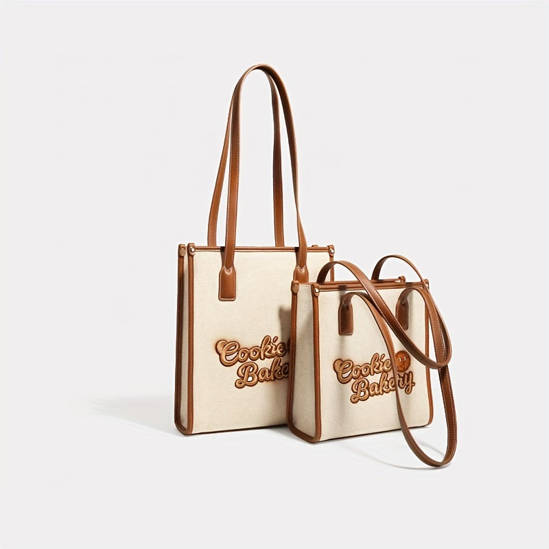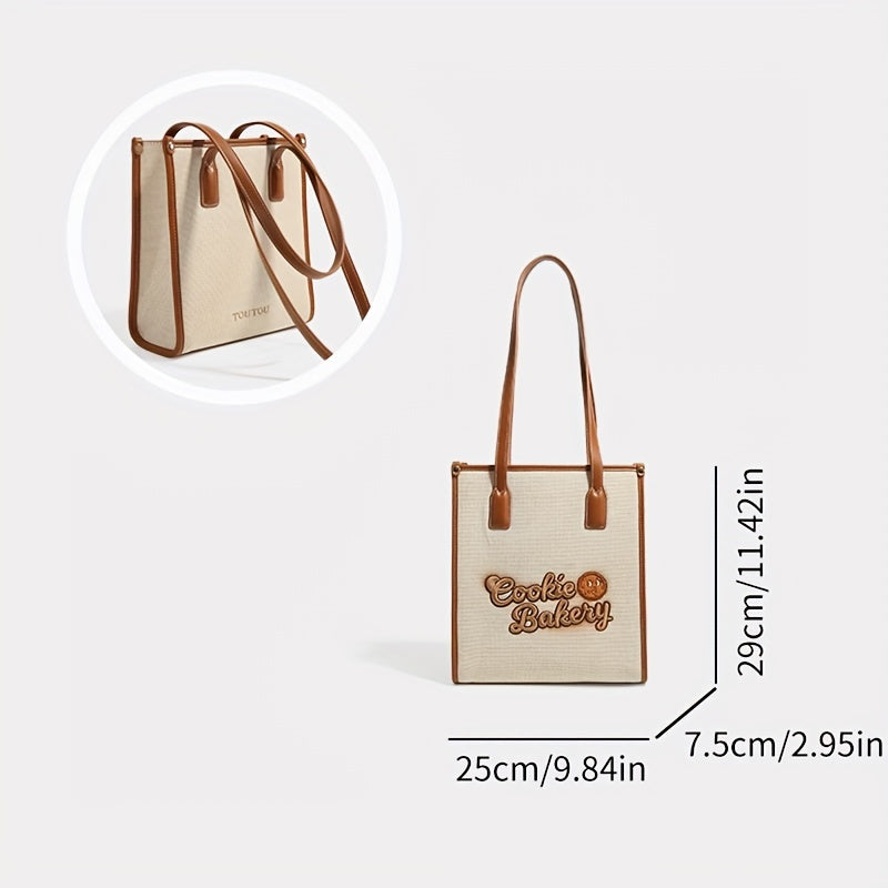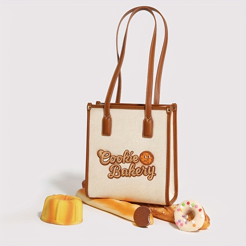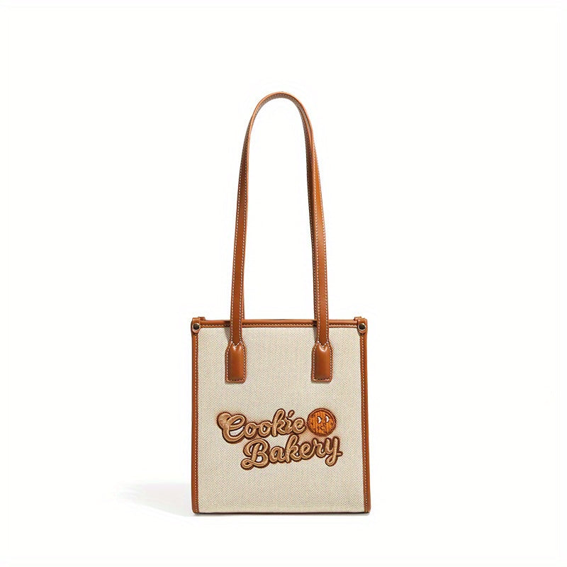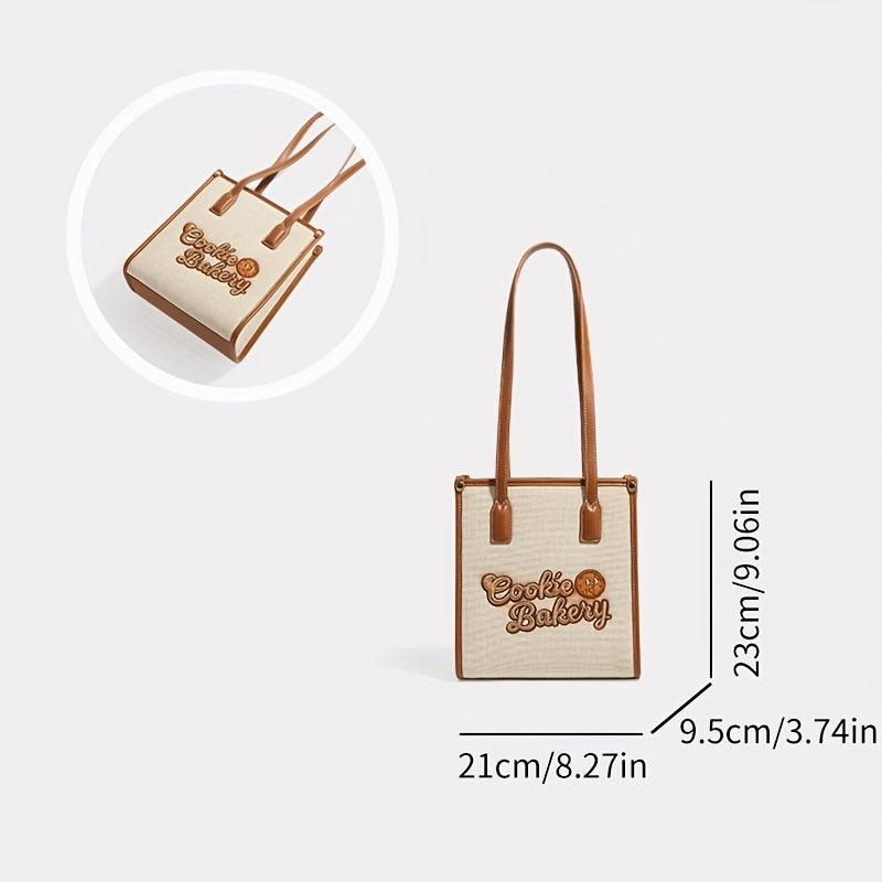 クッキー刺繍 キャンバスハンドバッグ 小さめ スクエアショルダーバッグ かわいい 脇掛けミニバッグ レディース