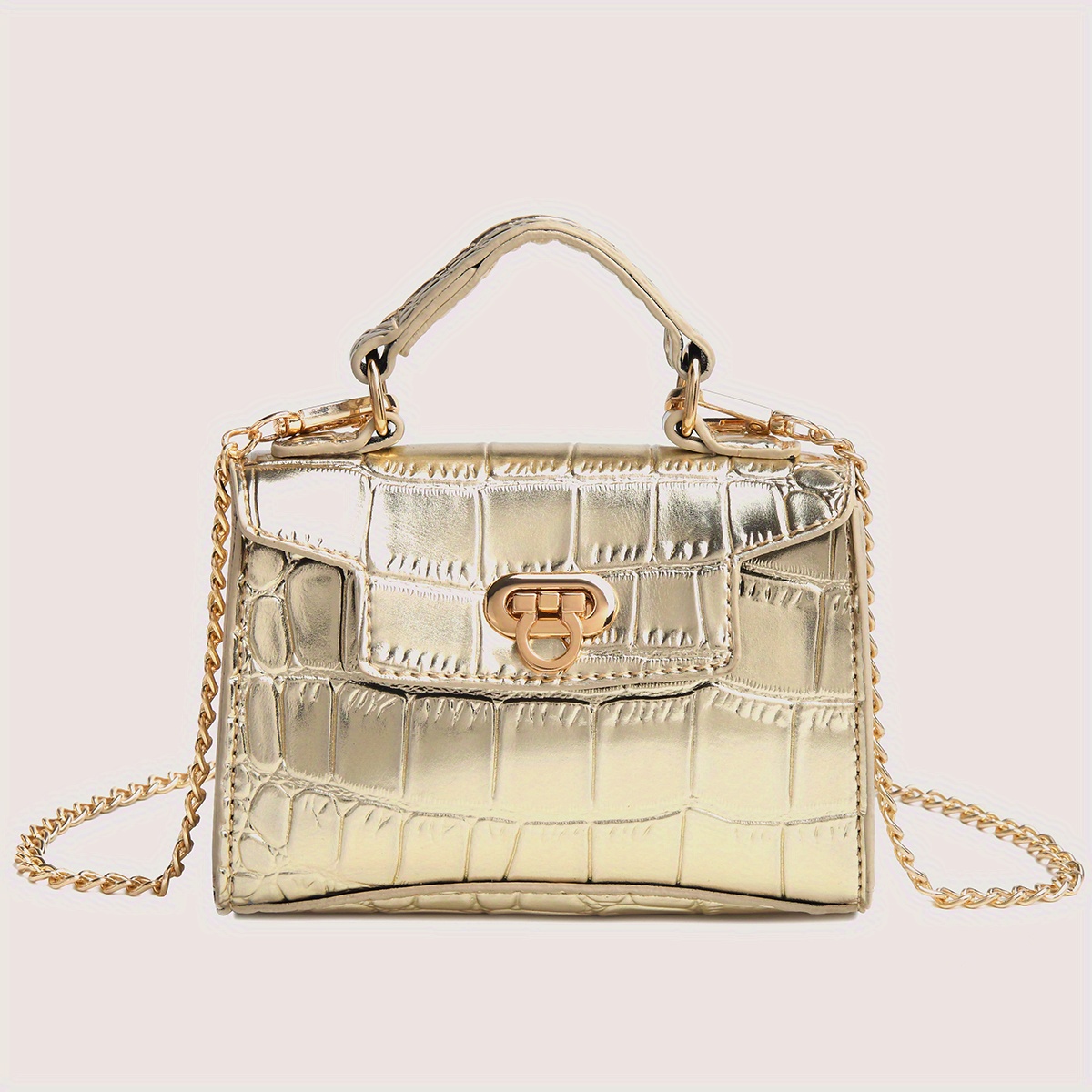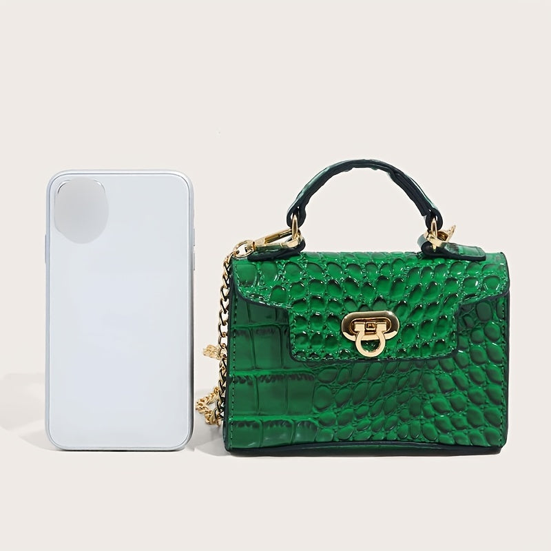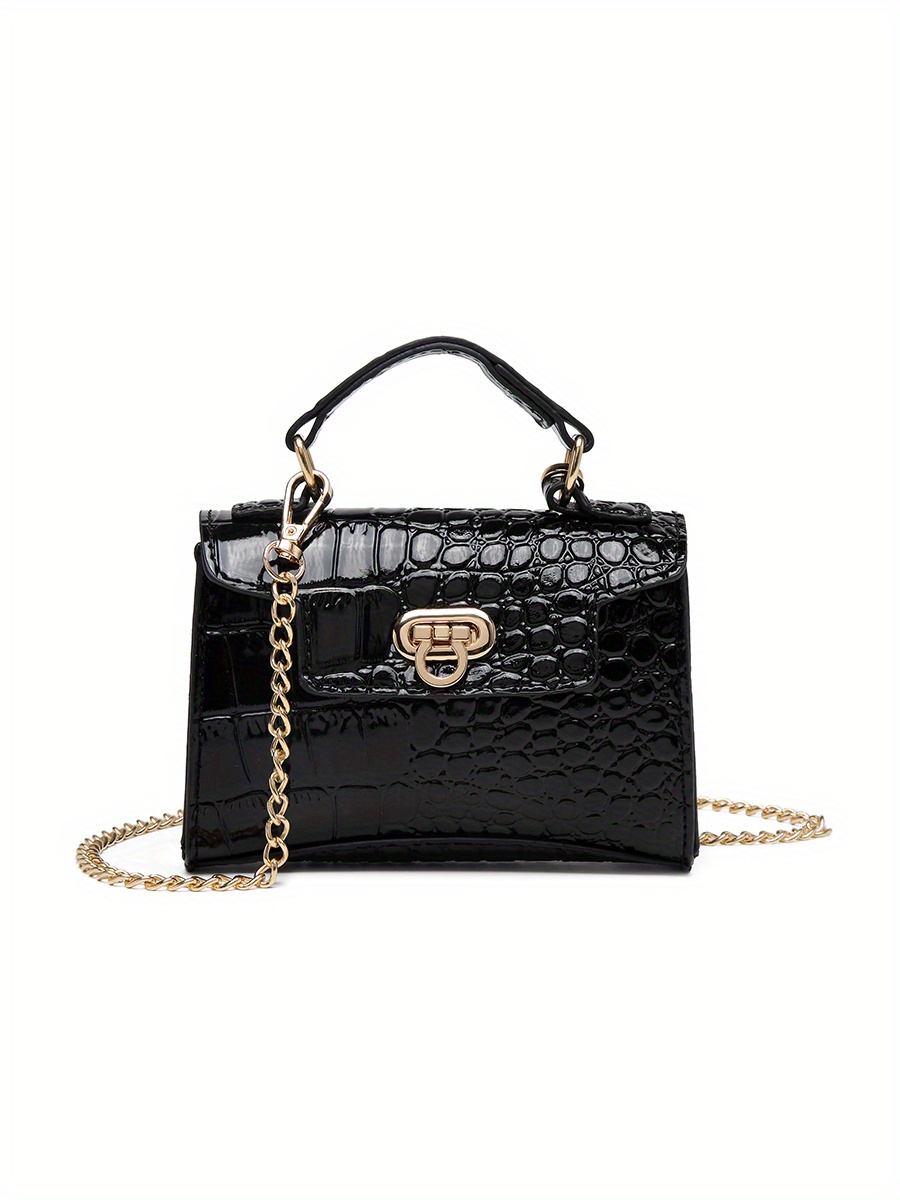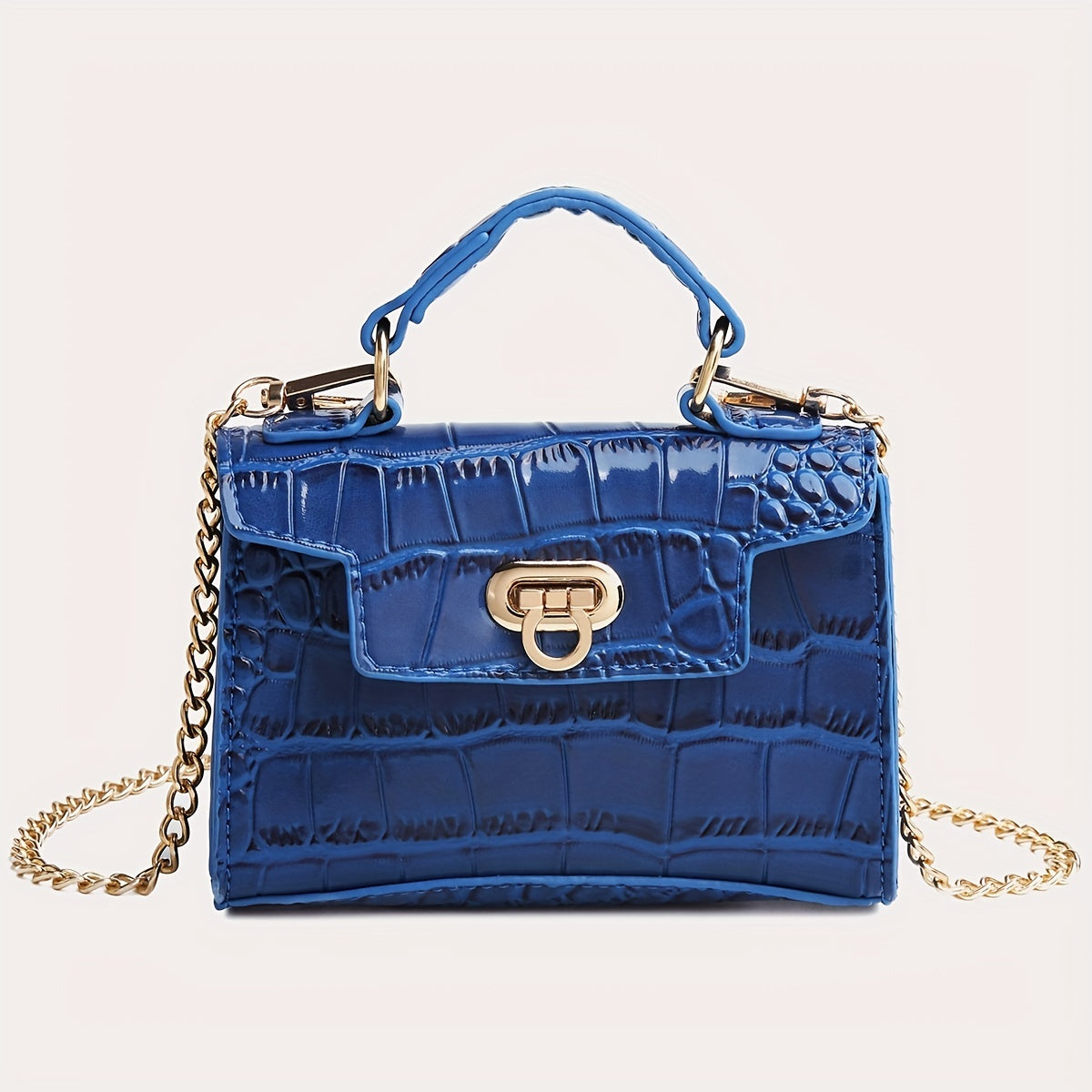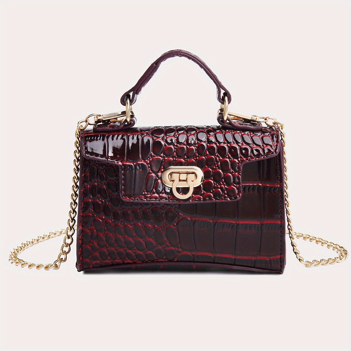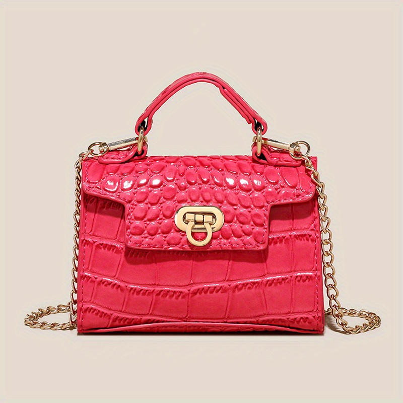 クロコ型押し ショルダーバッグ 無地 チェーンストラップ クロスボディ バックル装飾 トップハンドル レディースバッグ