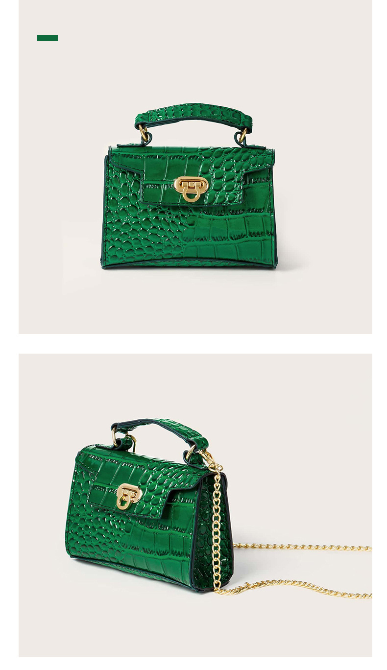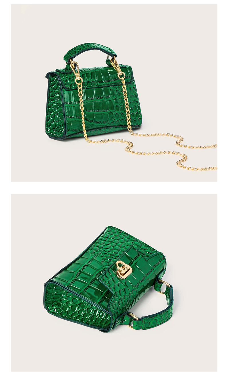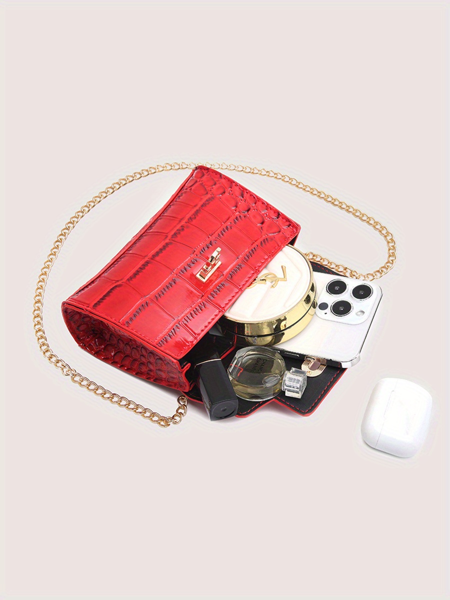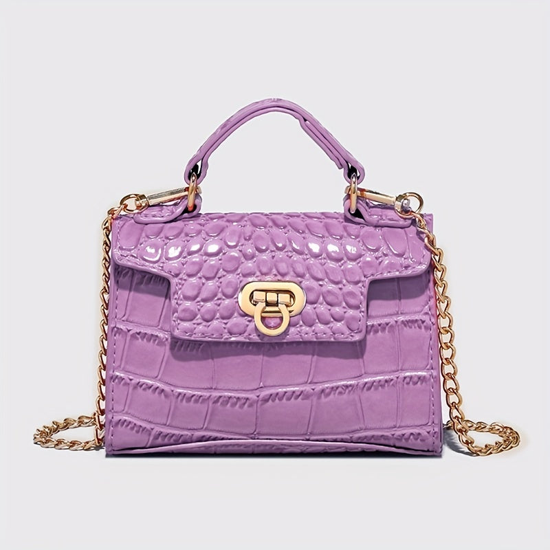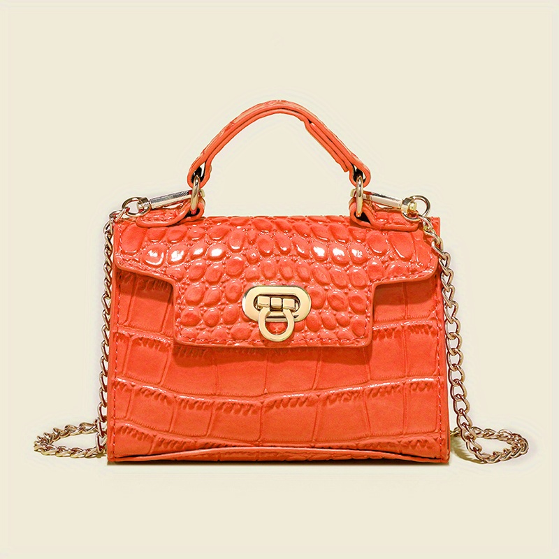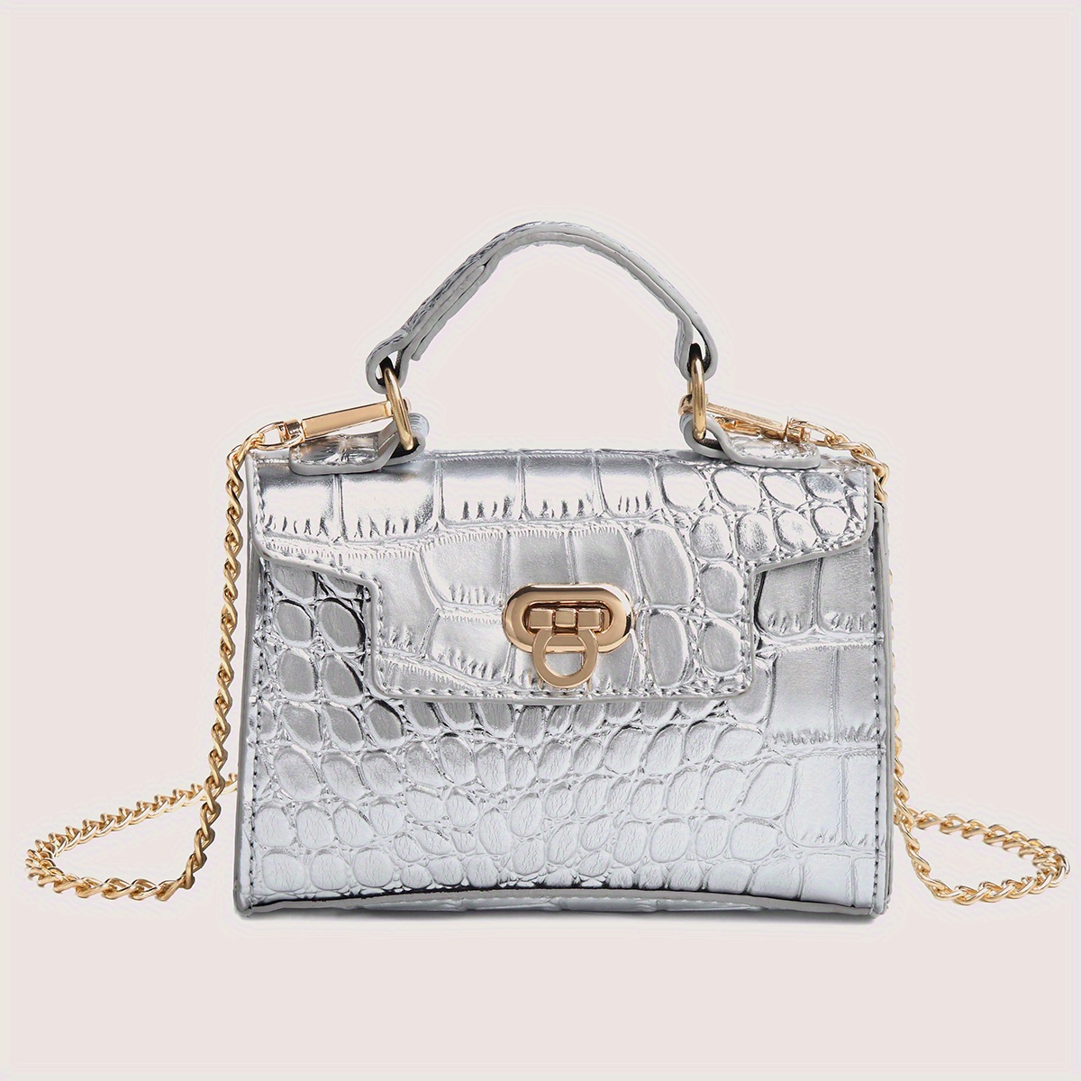 クロコ型押し ショルダーバッグ 無地 チェーンストラップ クロスボディ バックル装飾 トップハンドル レディースバッグ