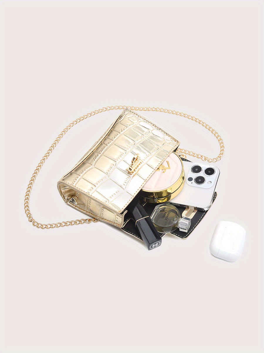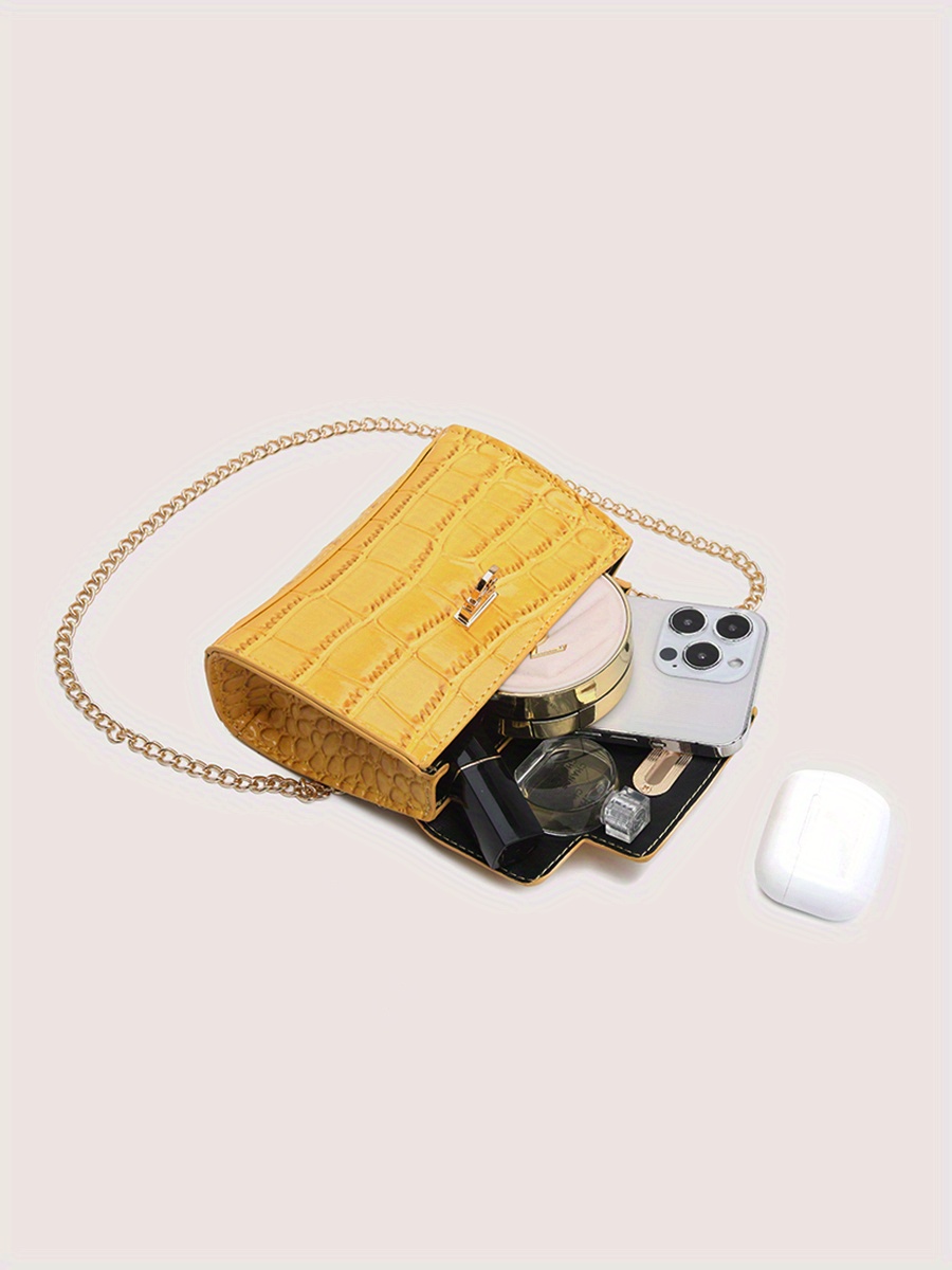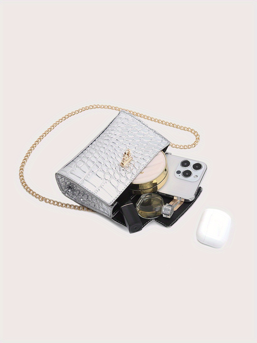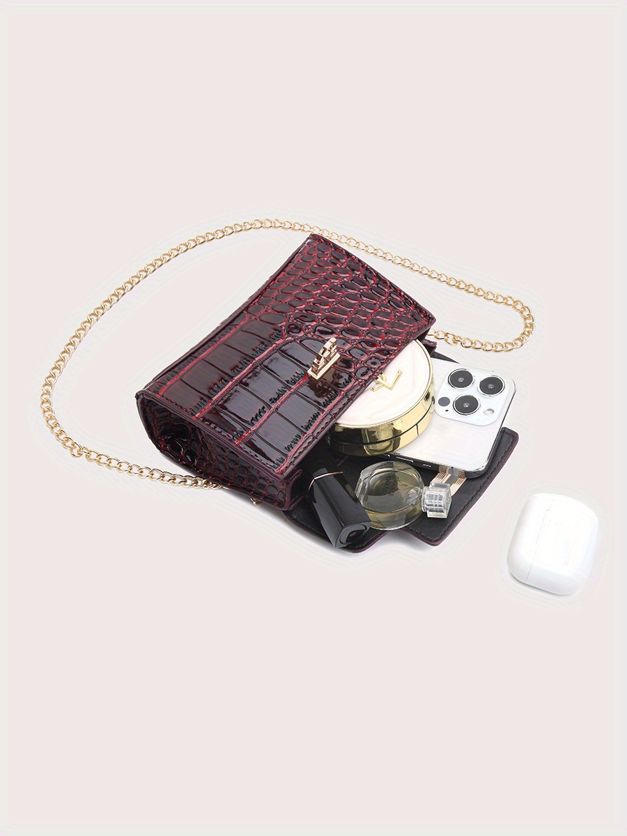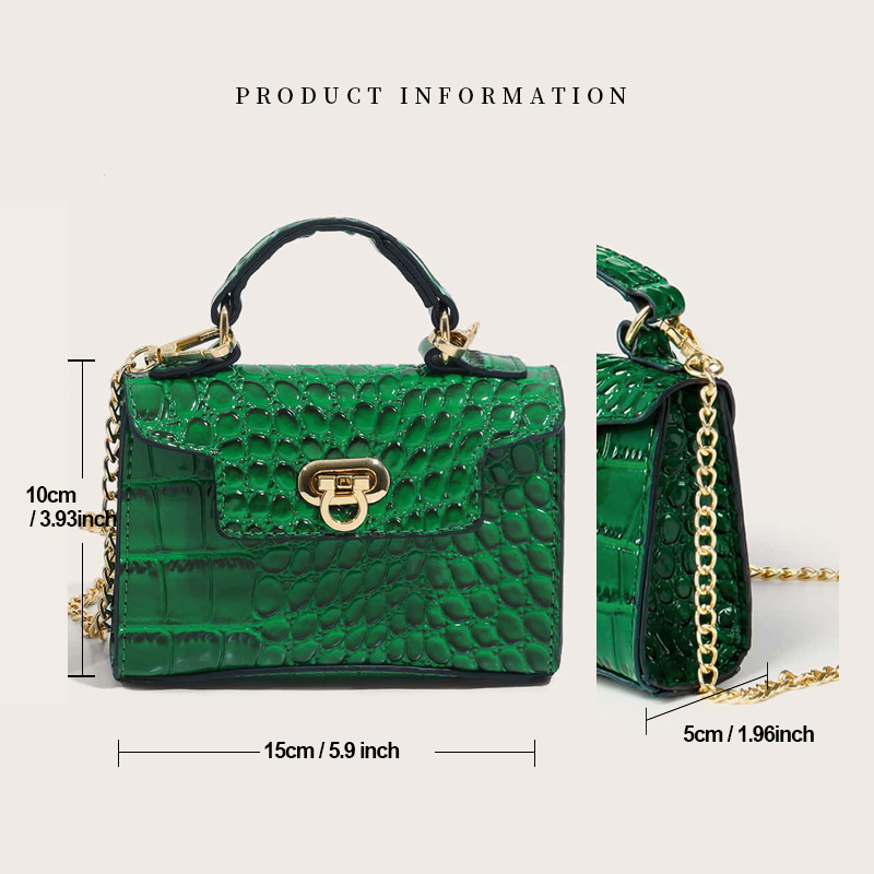 クロコ型押し ショルダーバッグ 無地 チェーンストラップ クロスボディ バックル装飾 トップハンドル レディースバッグ