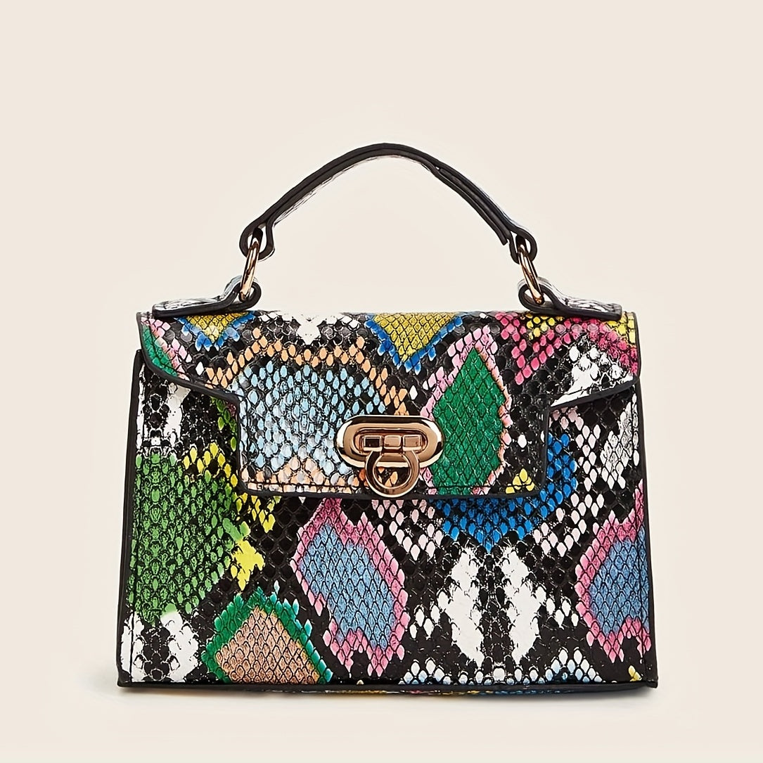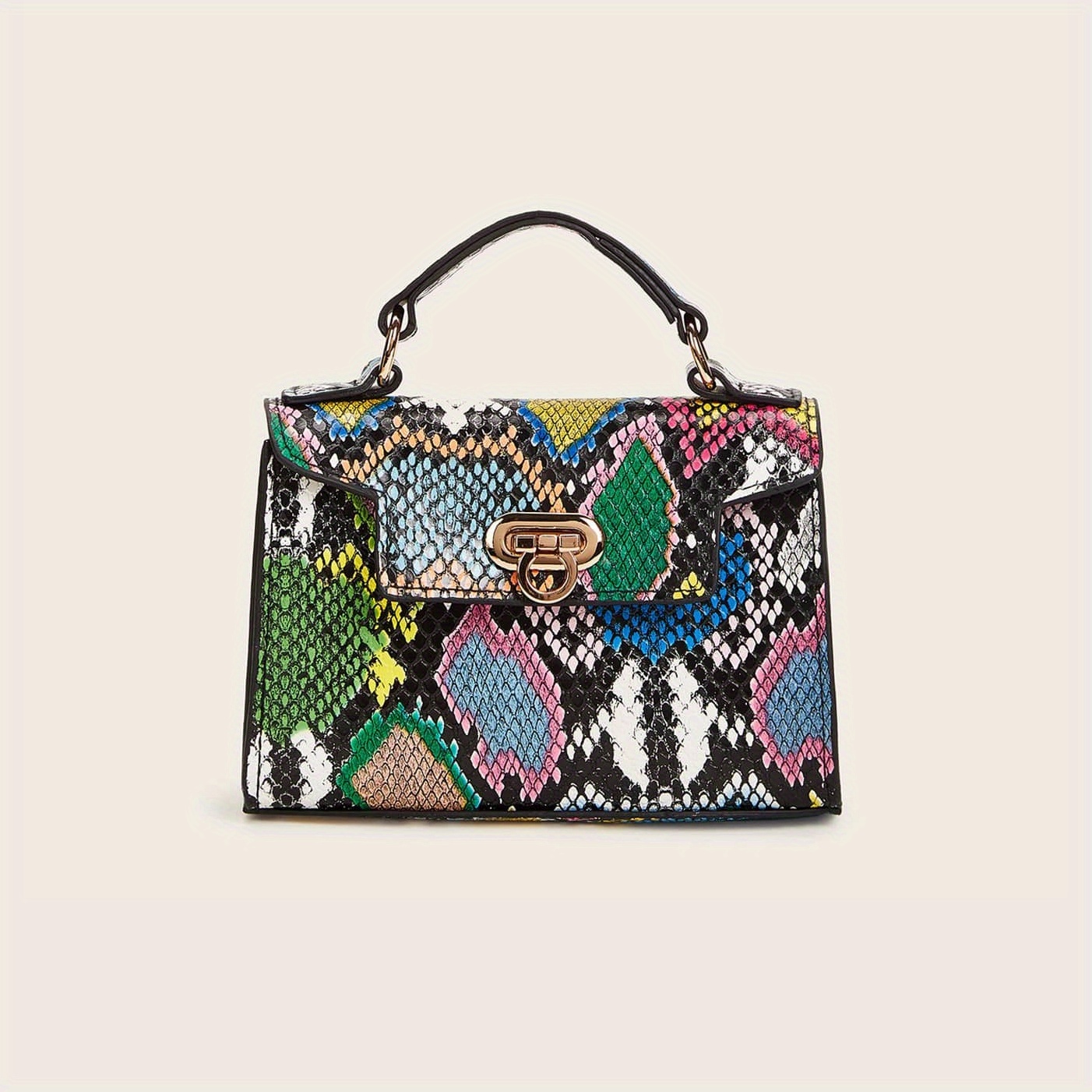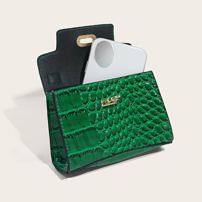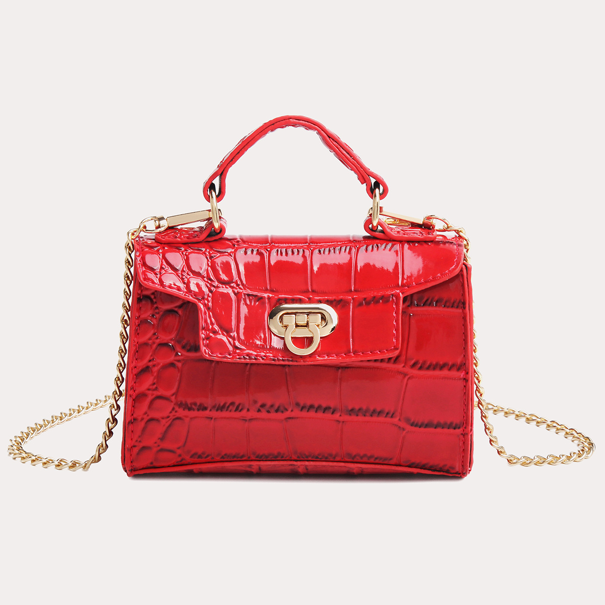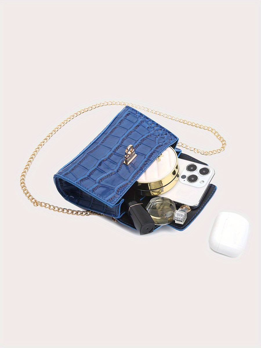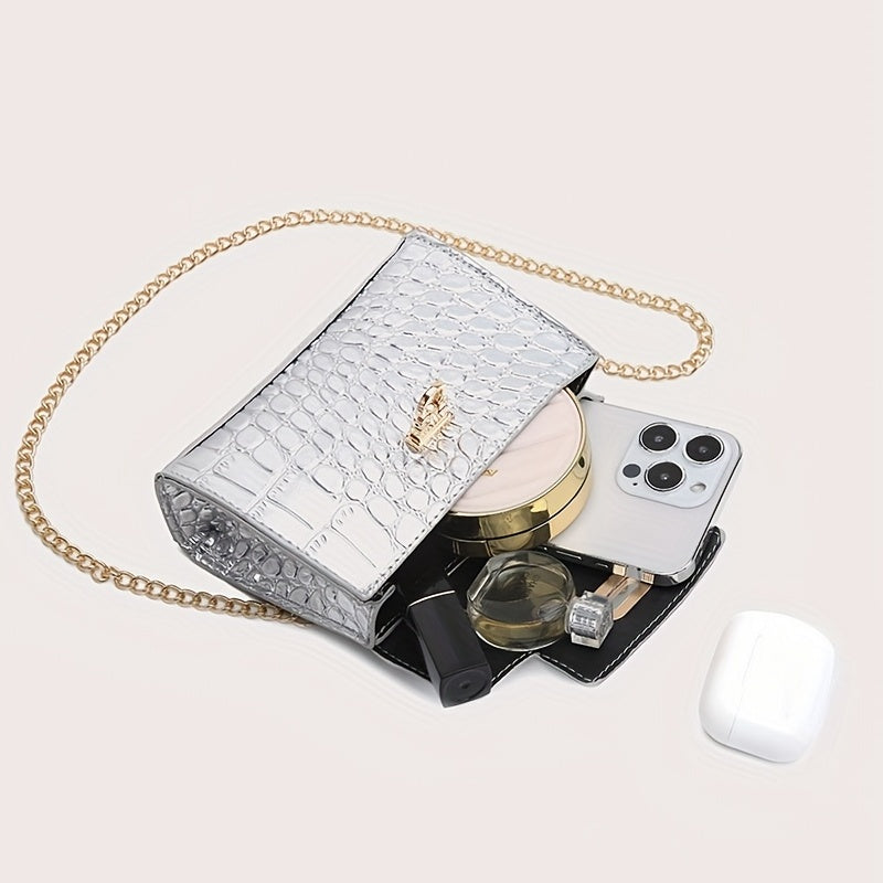 クロコ型押し ショルダーバッグ 無地 チェーンストラップ クロスボディ バックル装飾 トップハンドル レディースバッグ