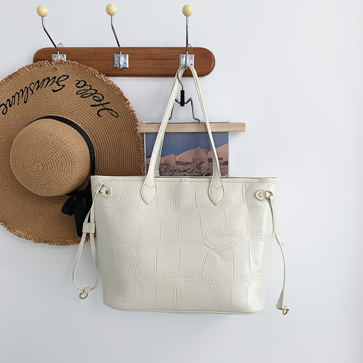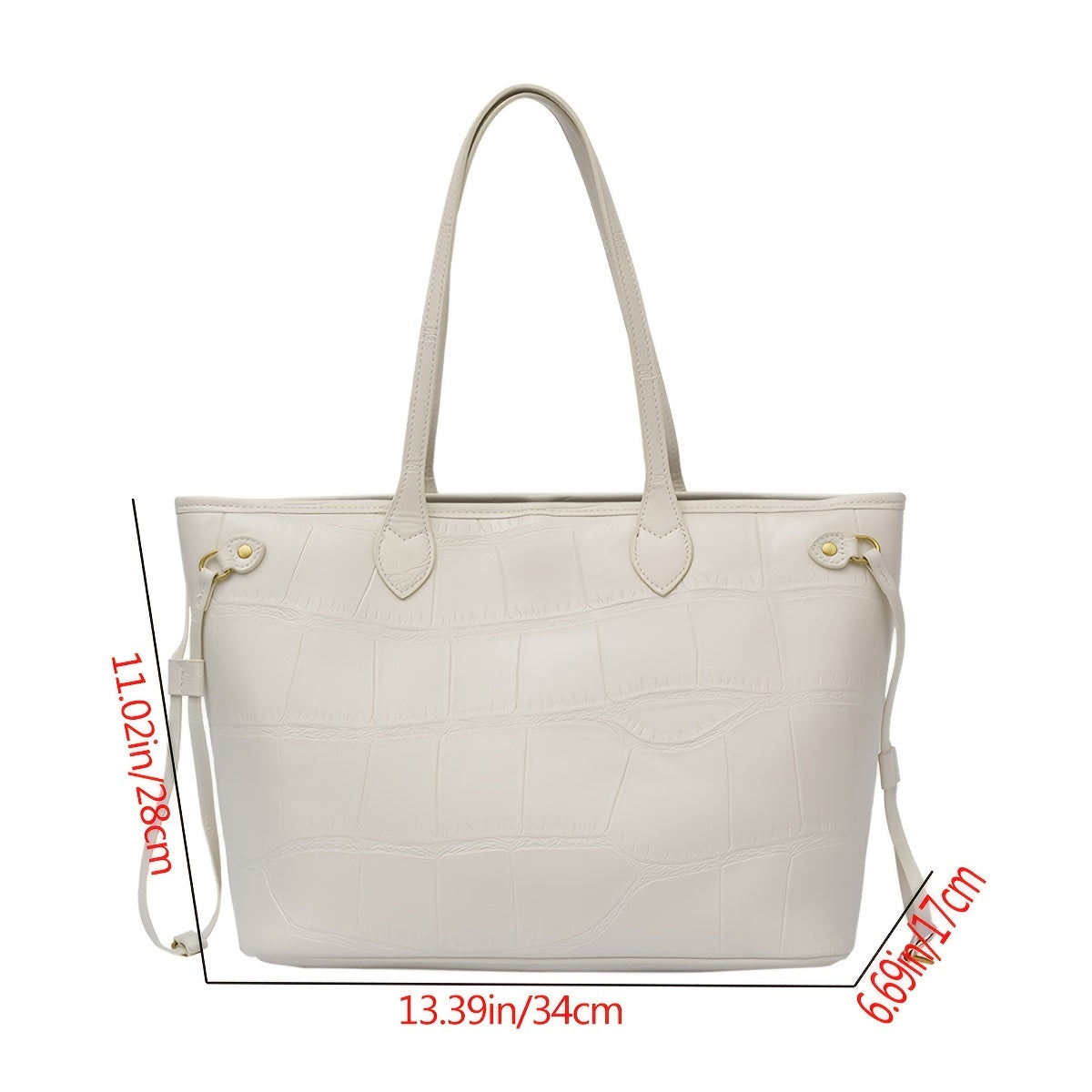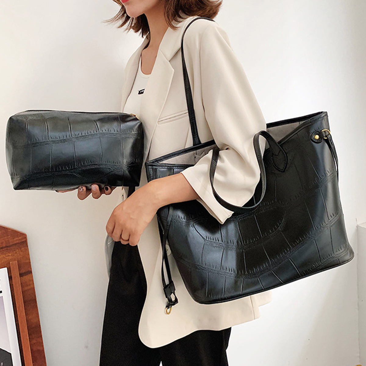 クロコ柄 トートバッグ シンプル 大容量 トレンドショルダー クラッチ付き 無地 通勤バッグ レディース