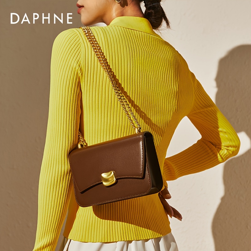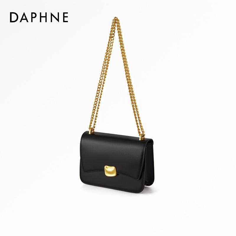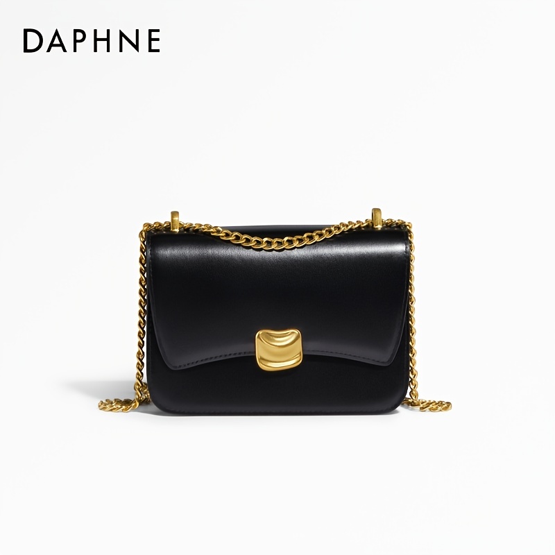 DAPHNE バックル装飾 スクエアバッグ オイル加工風 フェイクレザー クロスボディ チェーンストラップ付き ショルダーバッグ