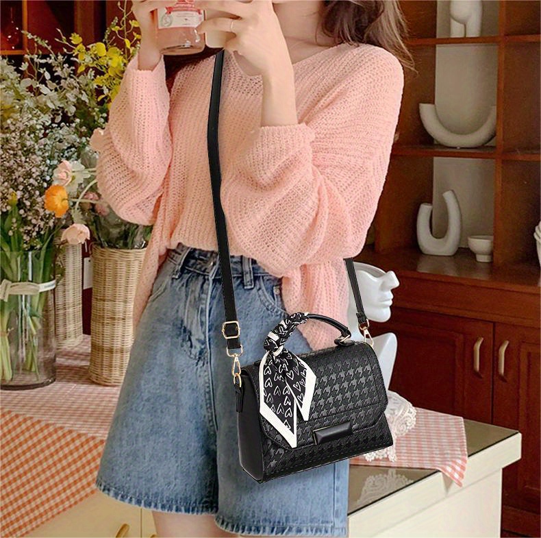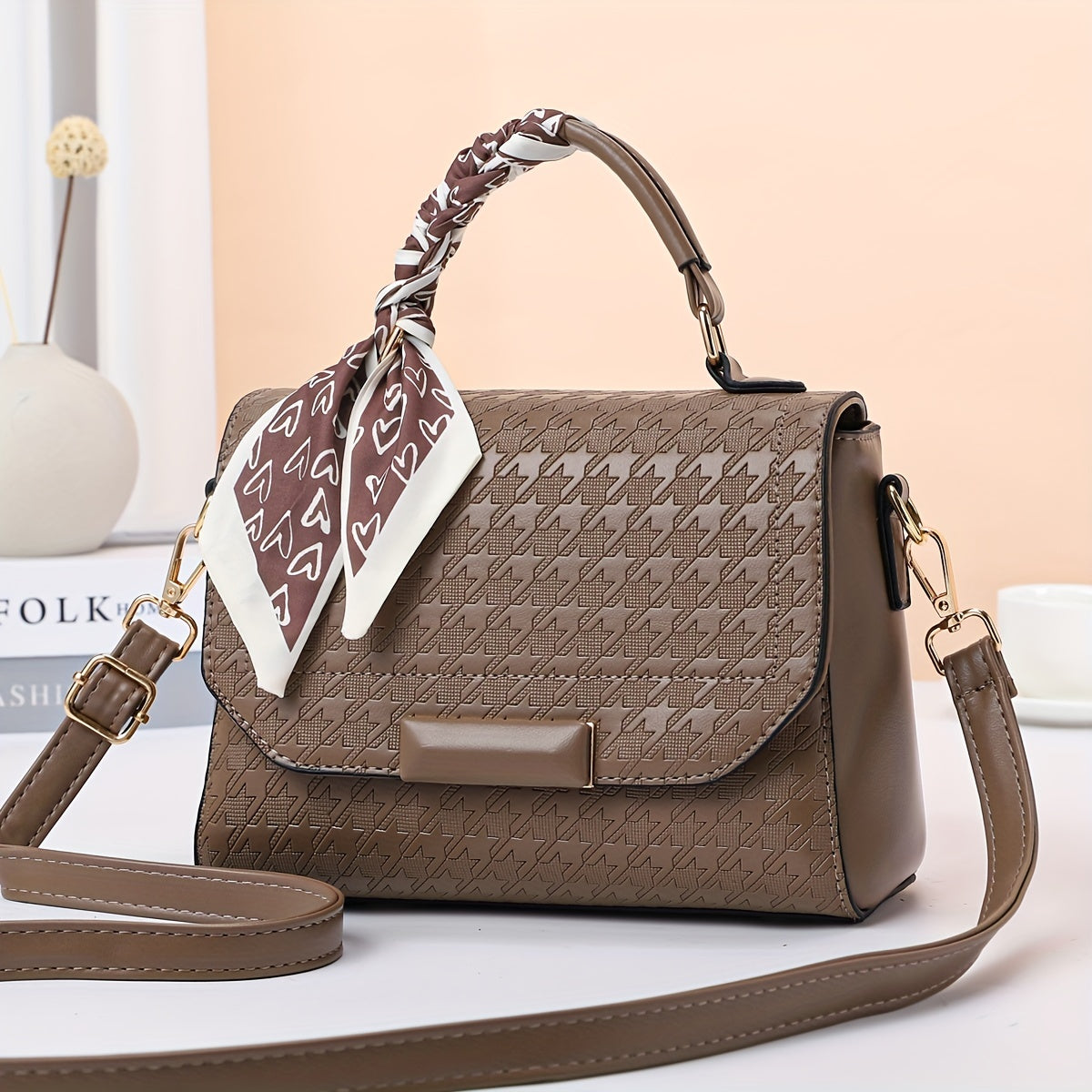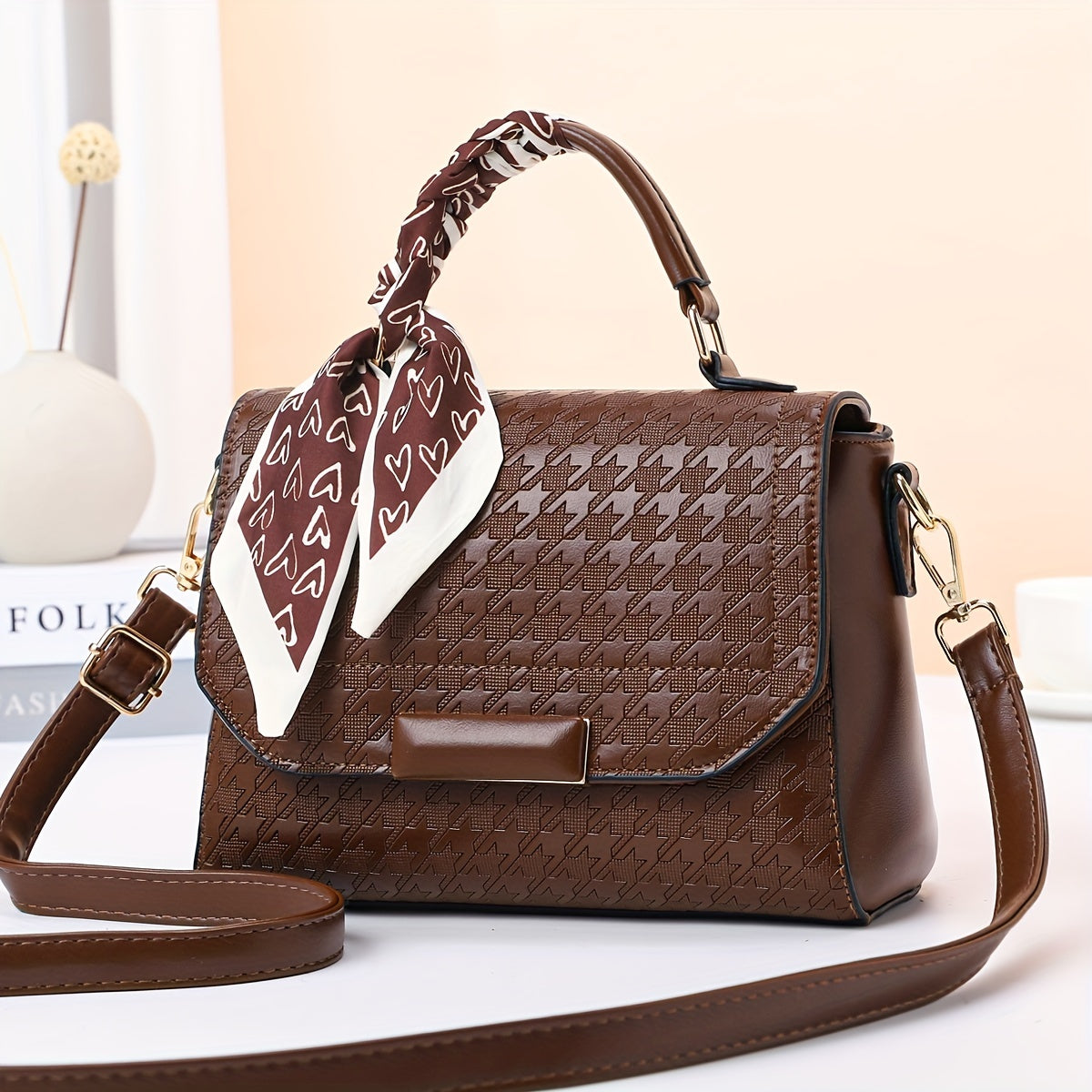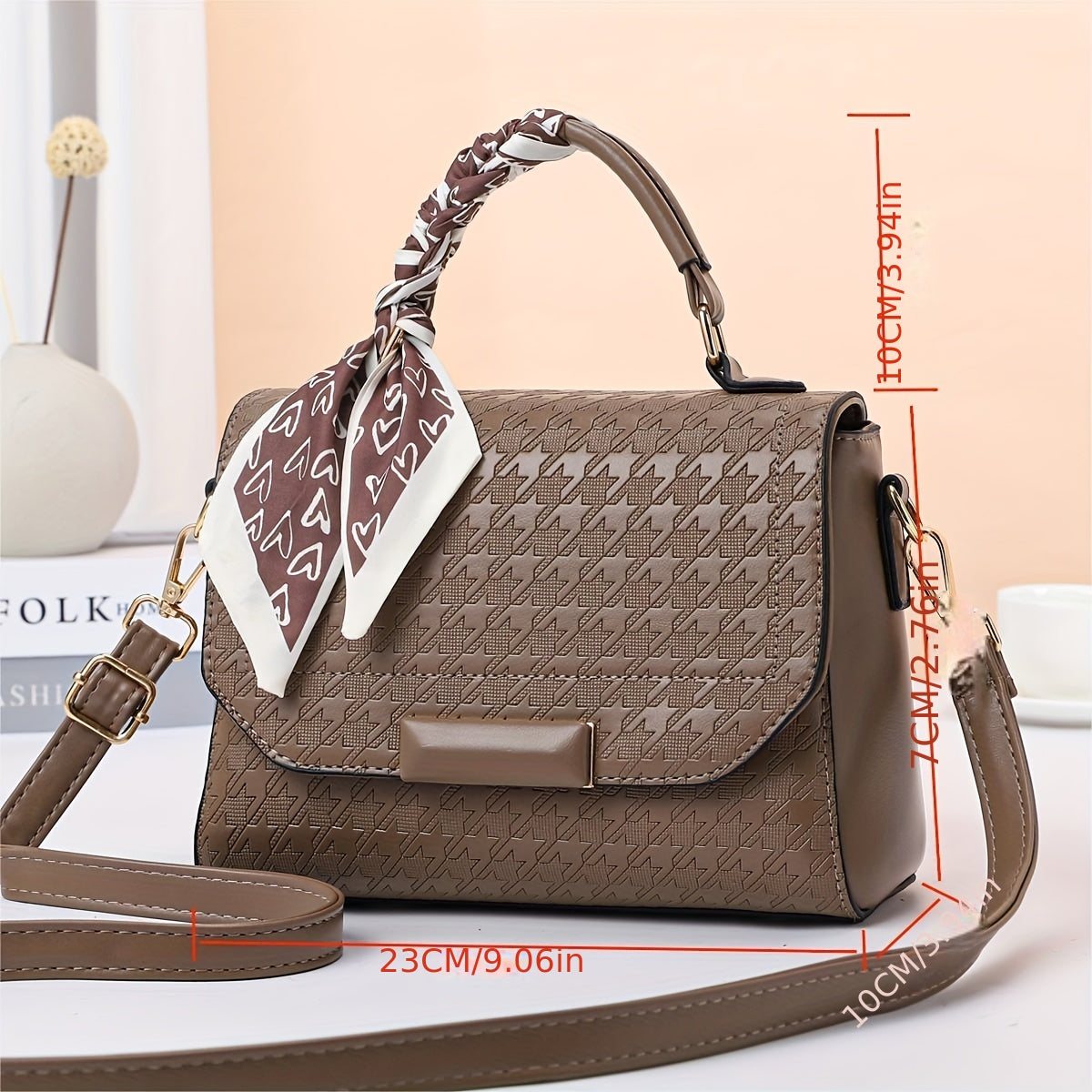 千鳥格子 メッセンジャーバッグ スカーフデザイン PUレザー クロスボディ 万能 通勤用 レディースハンドバッグ