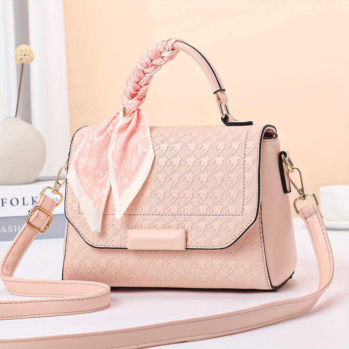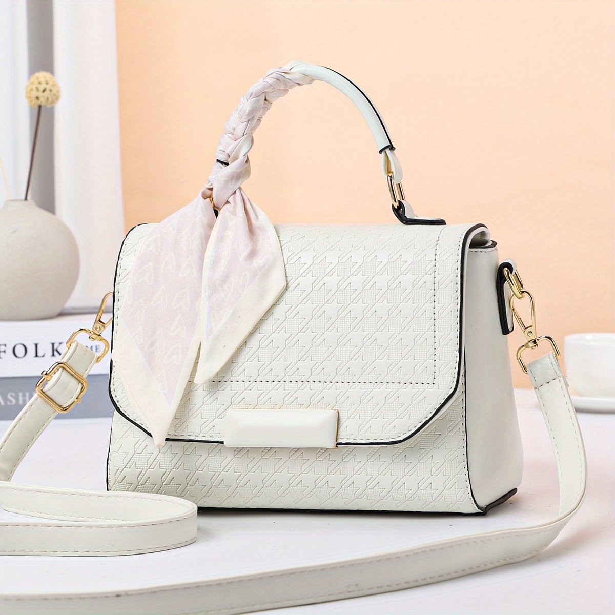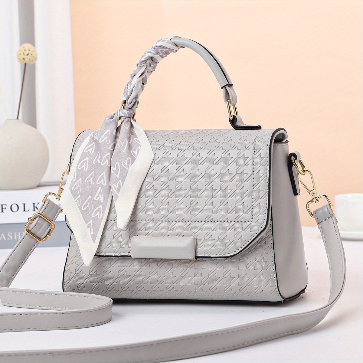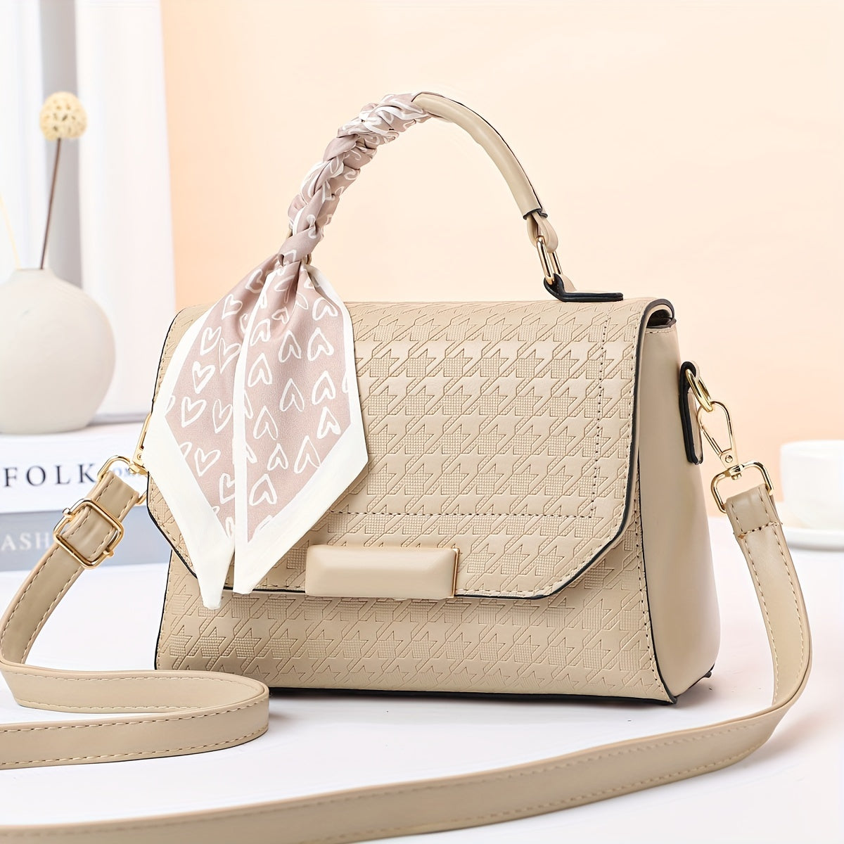 千鳥格子 メッセンジャーバッグ スカーフデザイン PUレザー クロスボディ 万能 通勤用 レディースハンドバッグ