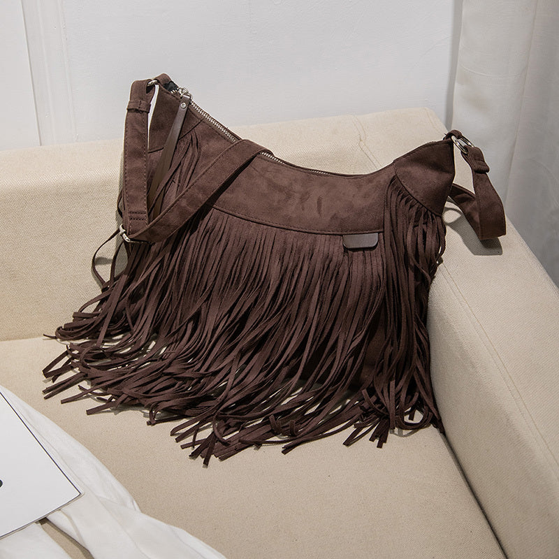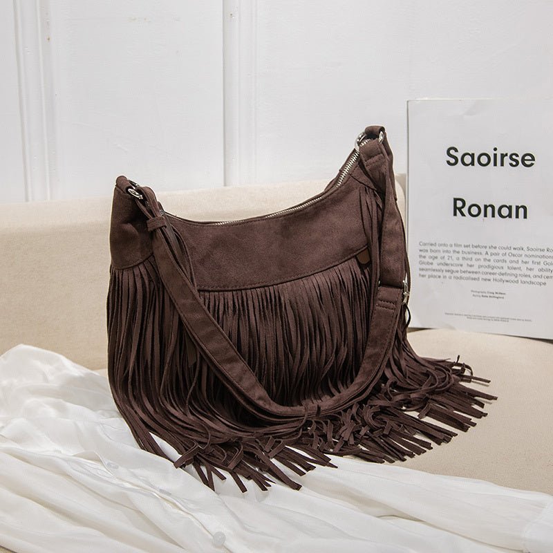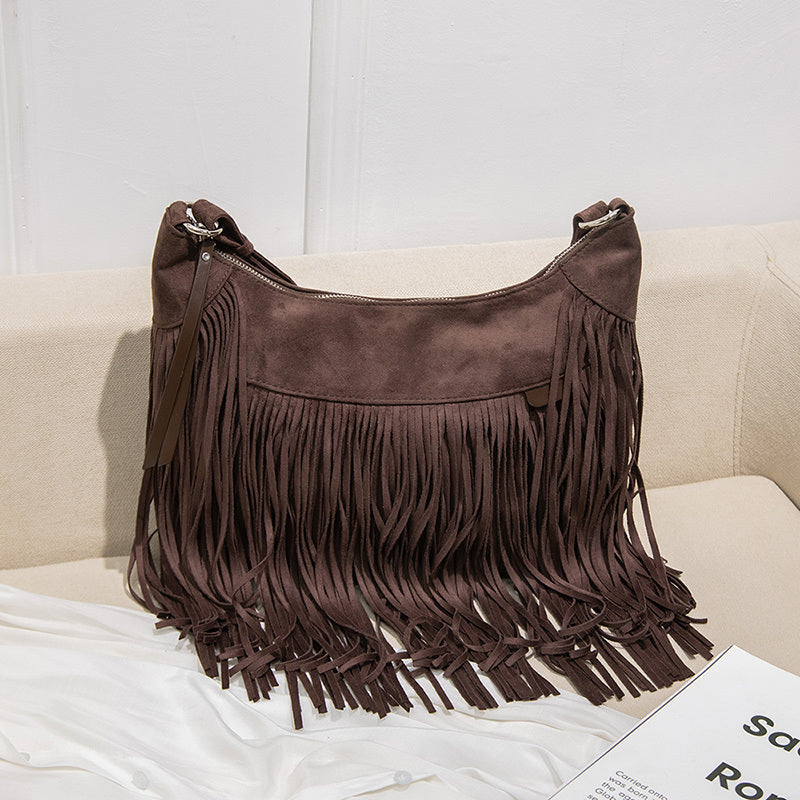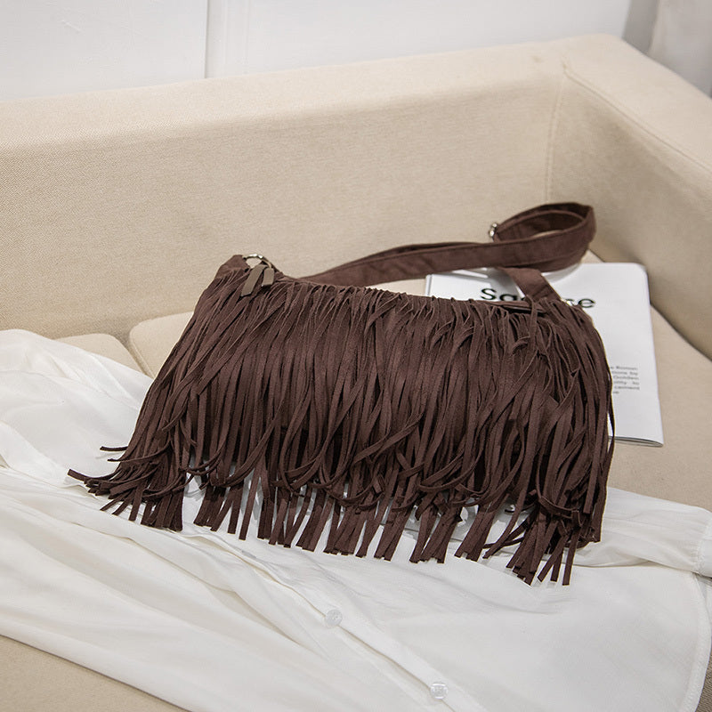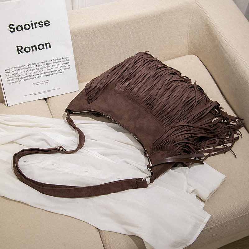 レディース ファッション ショルダーバッグ スエード調 パンクタッセル メッセンジャー