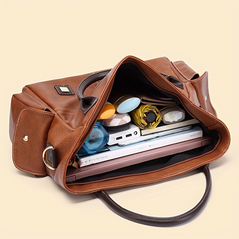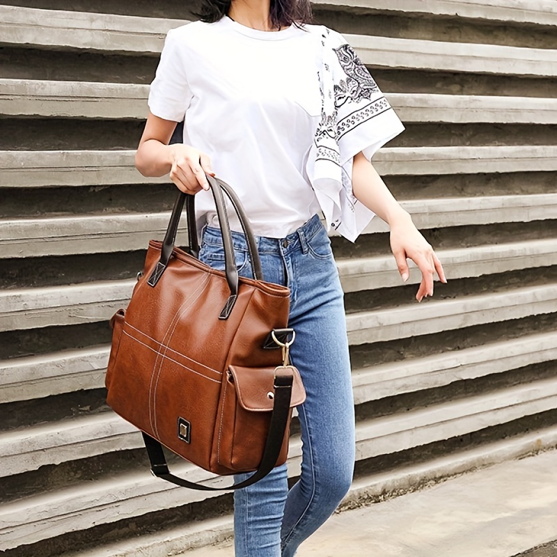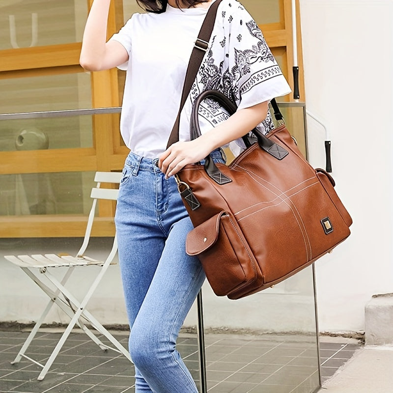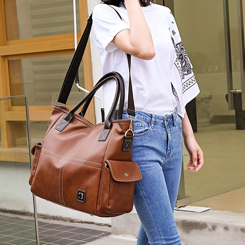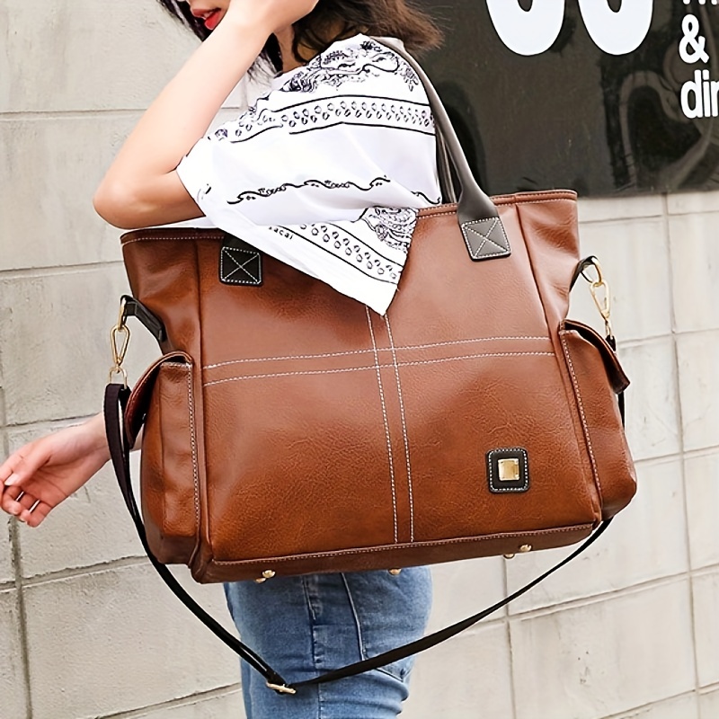 大容量 ソフトハンドバッグ PUレザー 防水仕様 ショルダーバッグ 取り外し可能ストラップ付き カジュアルデザイン