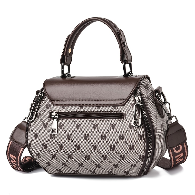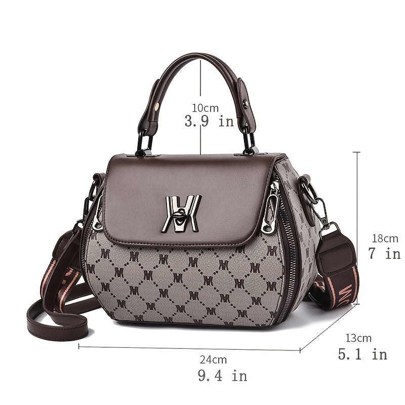 レター柄 フラップバッグ レディース ターンロック トップハンドル ファスナー付き ショルダーバッグ