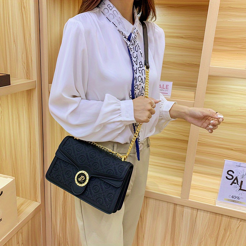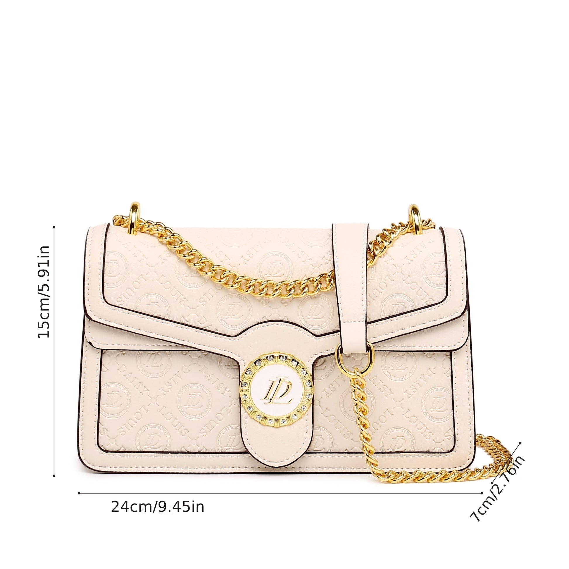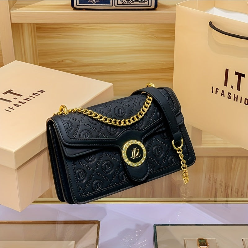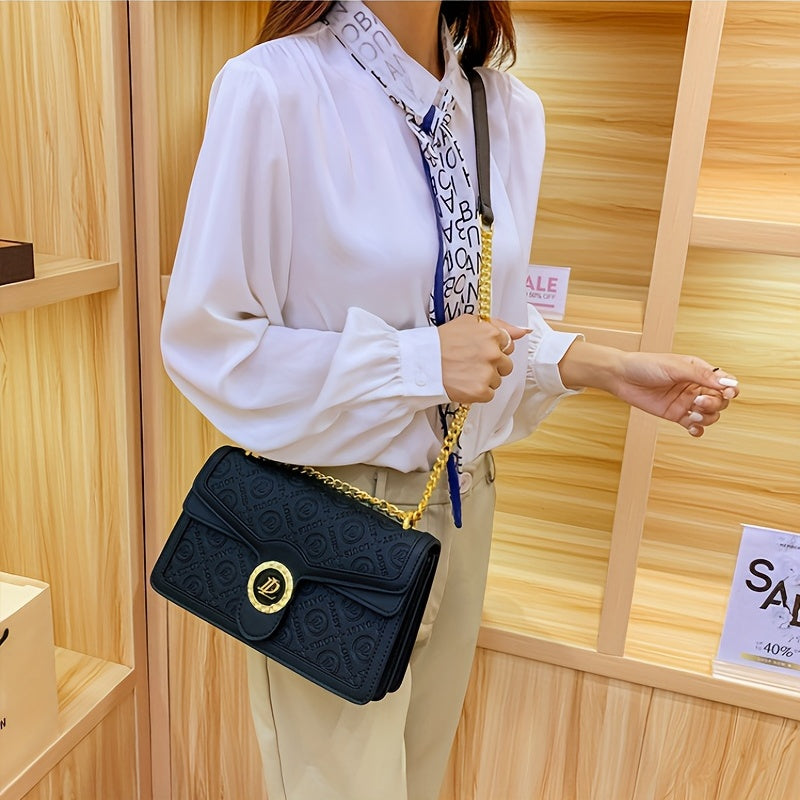 モノグラム型押し ショルダーバッグ エレガント レザー調 ファスナー クロスボディ チェーンフラップ 脇掛けミニバッグ