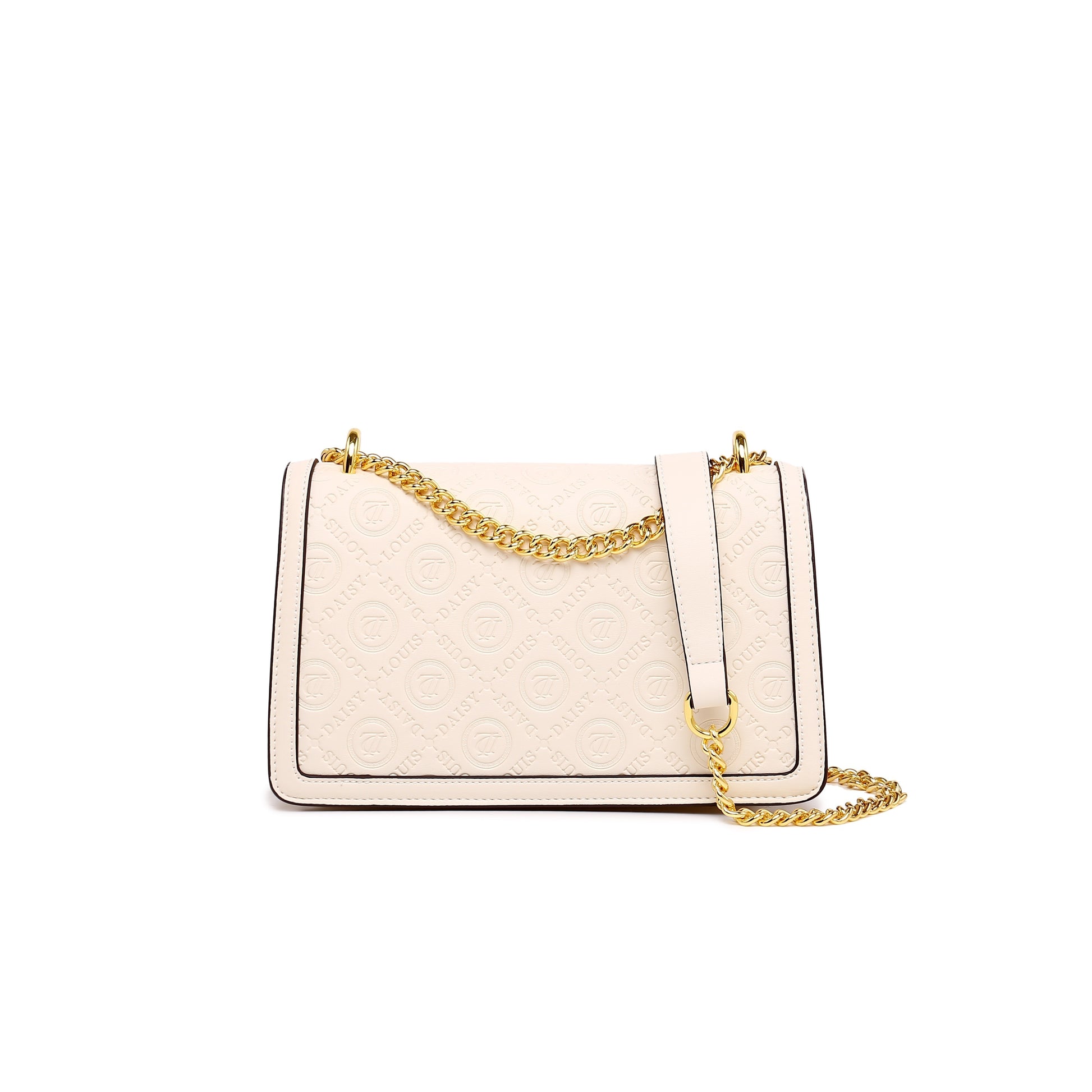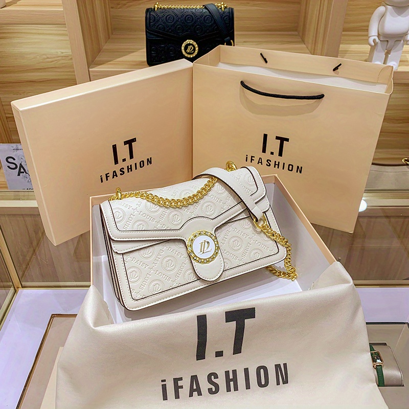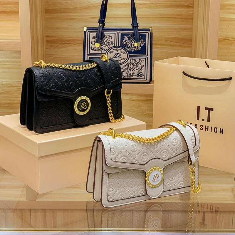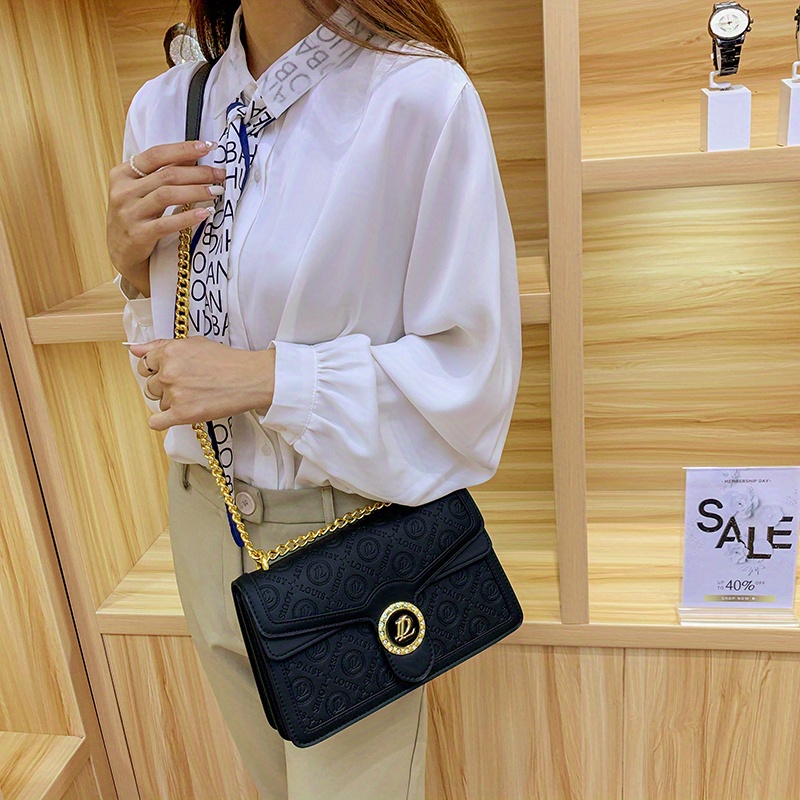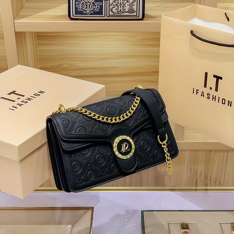 モノグラム型押し ショルダーバッグ エレガント レザー調 ファスナー クロスボディ チェーンフラップ 脇掛けミニバッグ