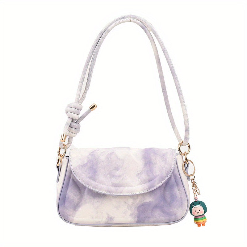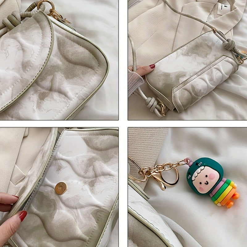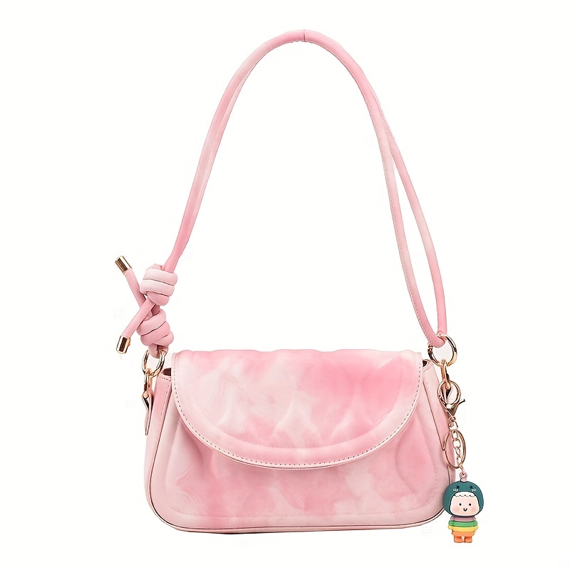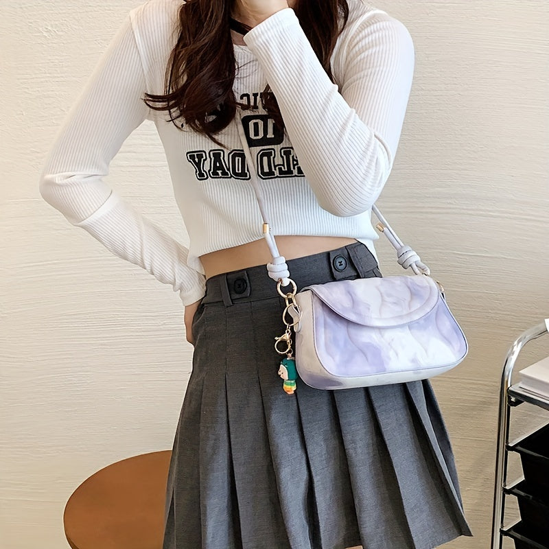 グラデーション型押し ショルダーバッグ ファッション PUレザー クロスボディ かわいいチャーム付き 脇掛けミニバッグ