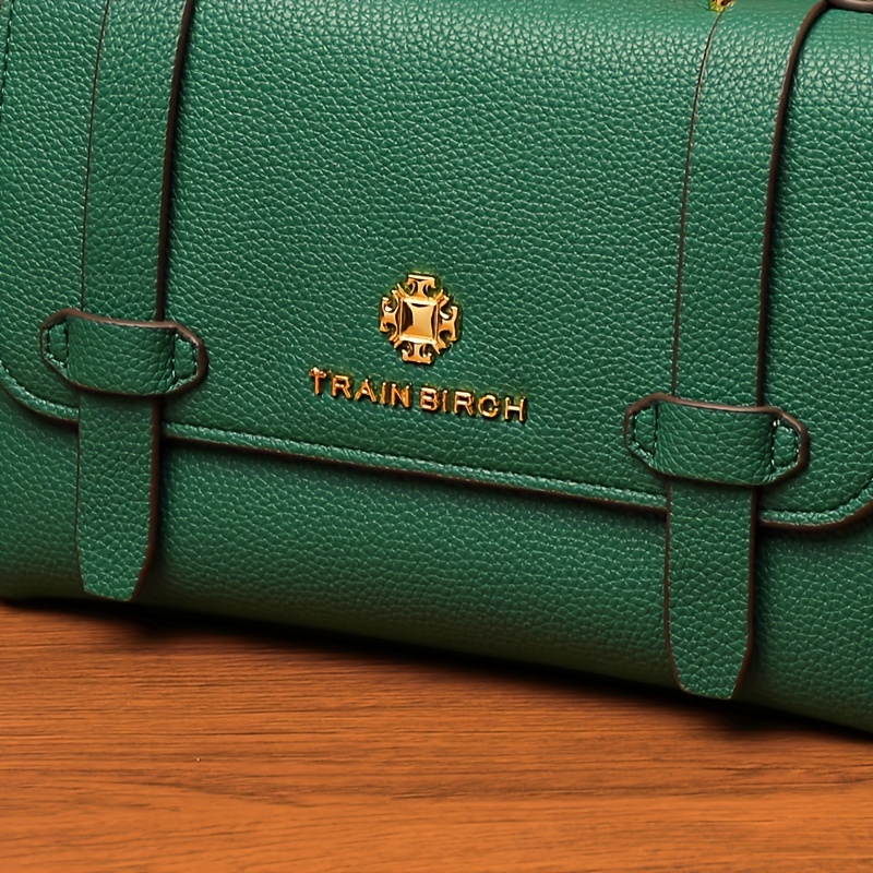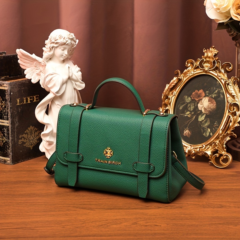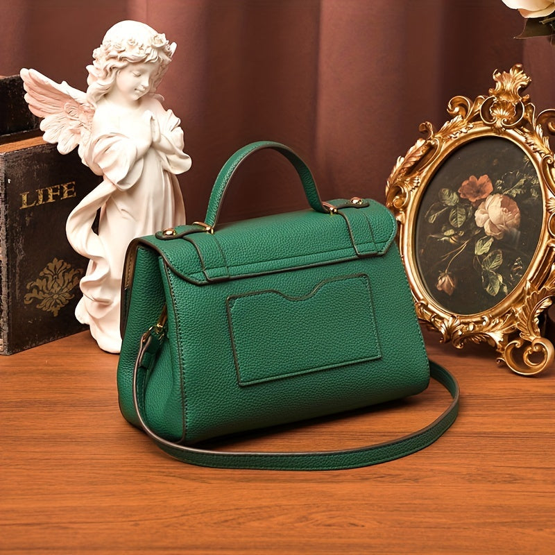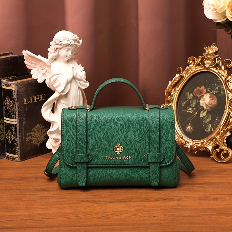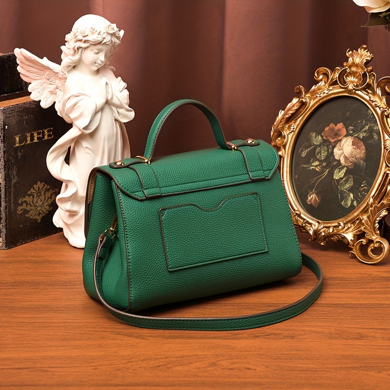 ポータブルハンドル ハンドバッグ ファスナー付き ヴィンテージグリーン ショルダーバッグ 大容量 マグネット開閉ショルダー