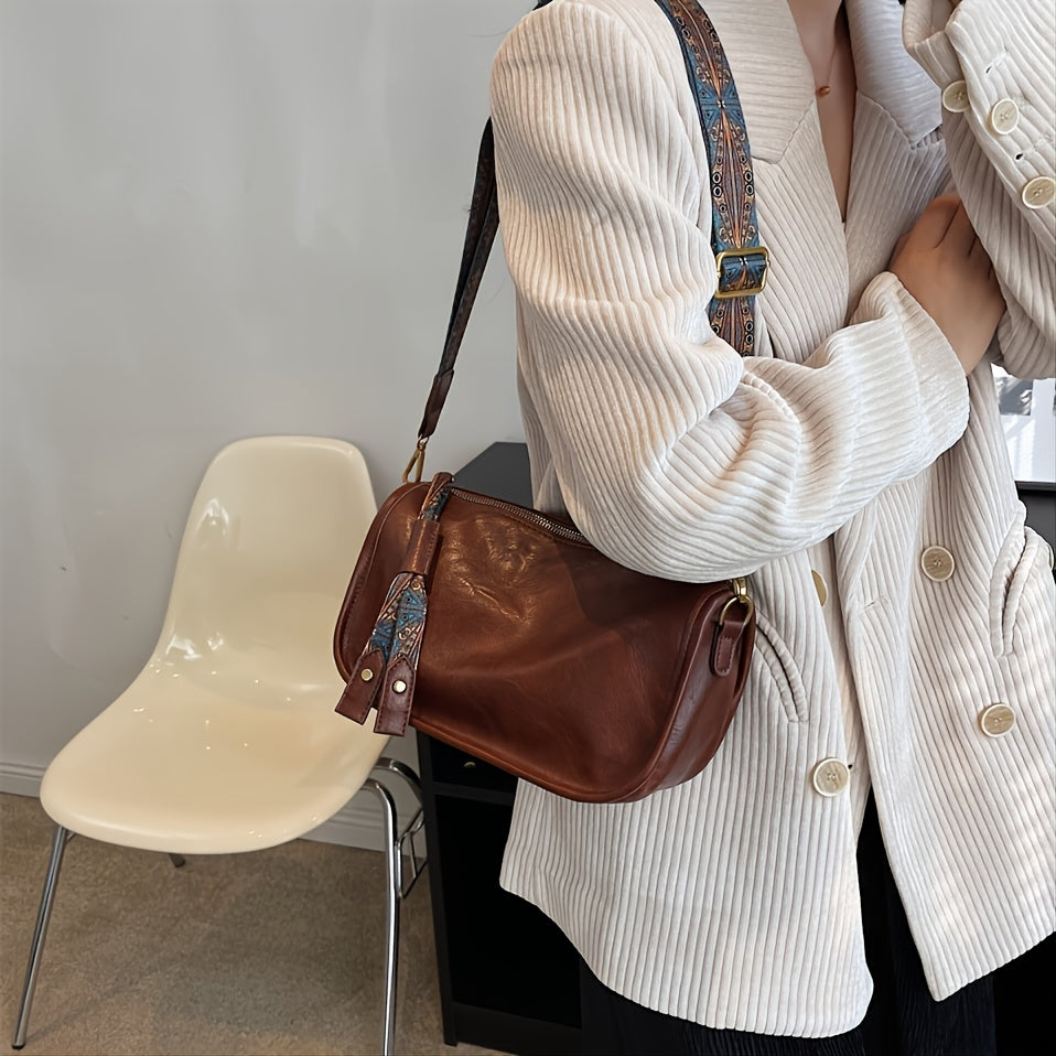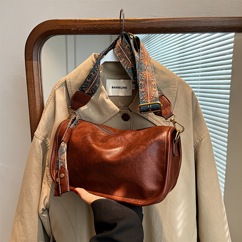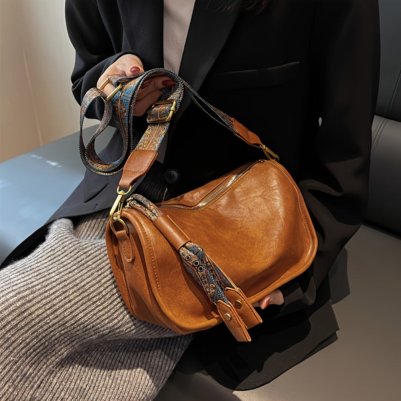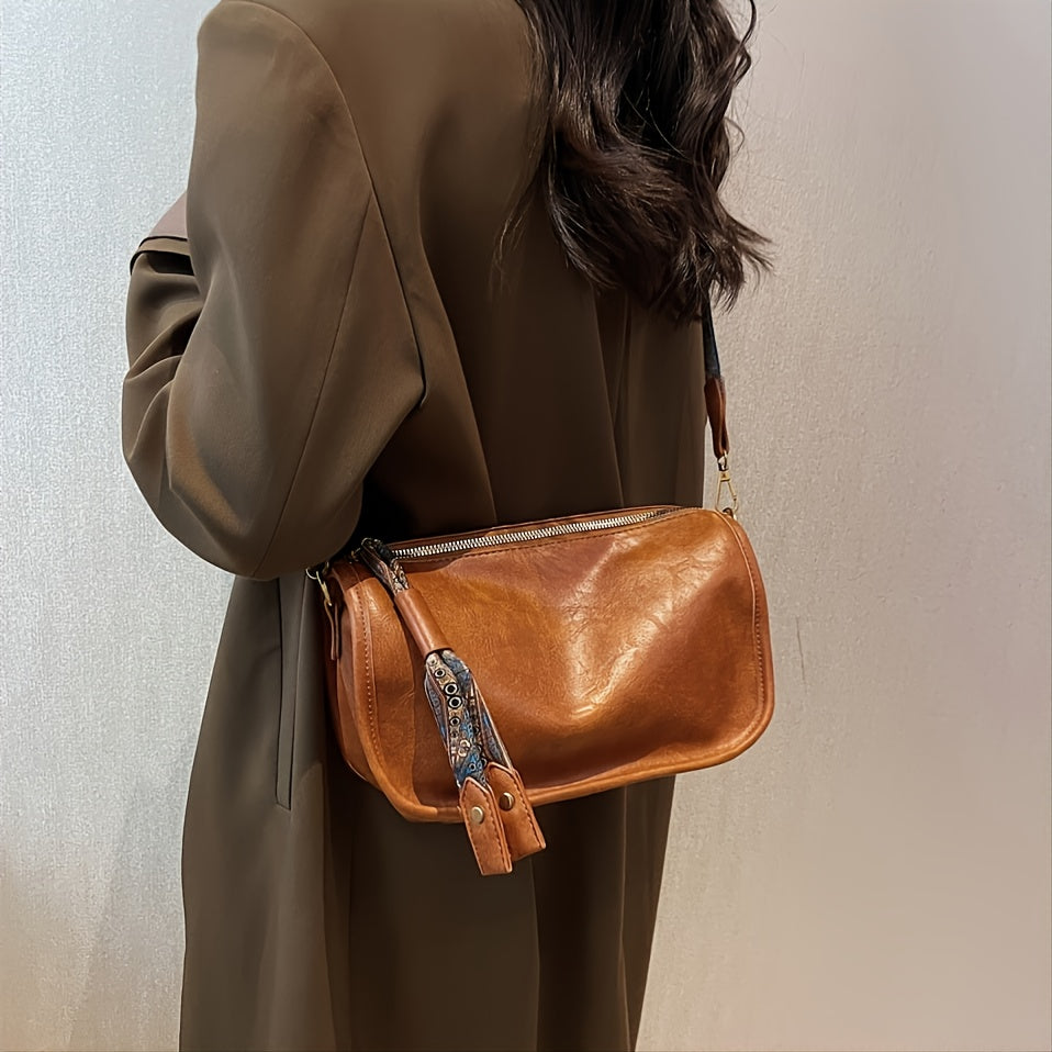 レトロスタイル ショルダーバッグ ファスナー付き メッセンジャーバッグ レディース フェイクレザー クロスボディ