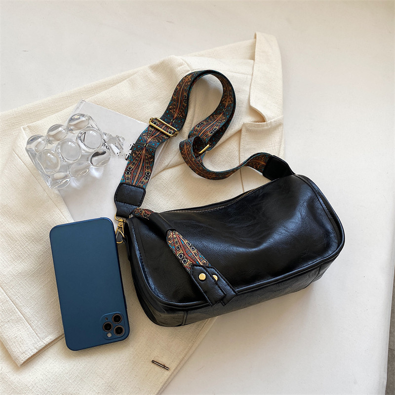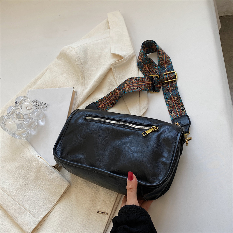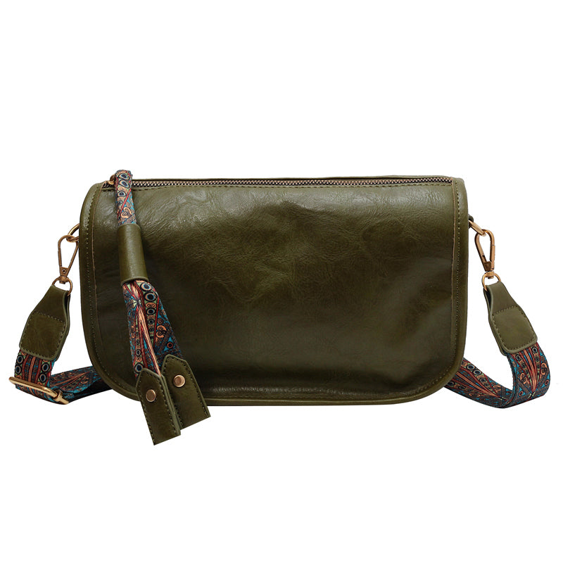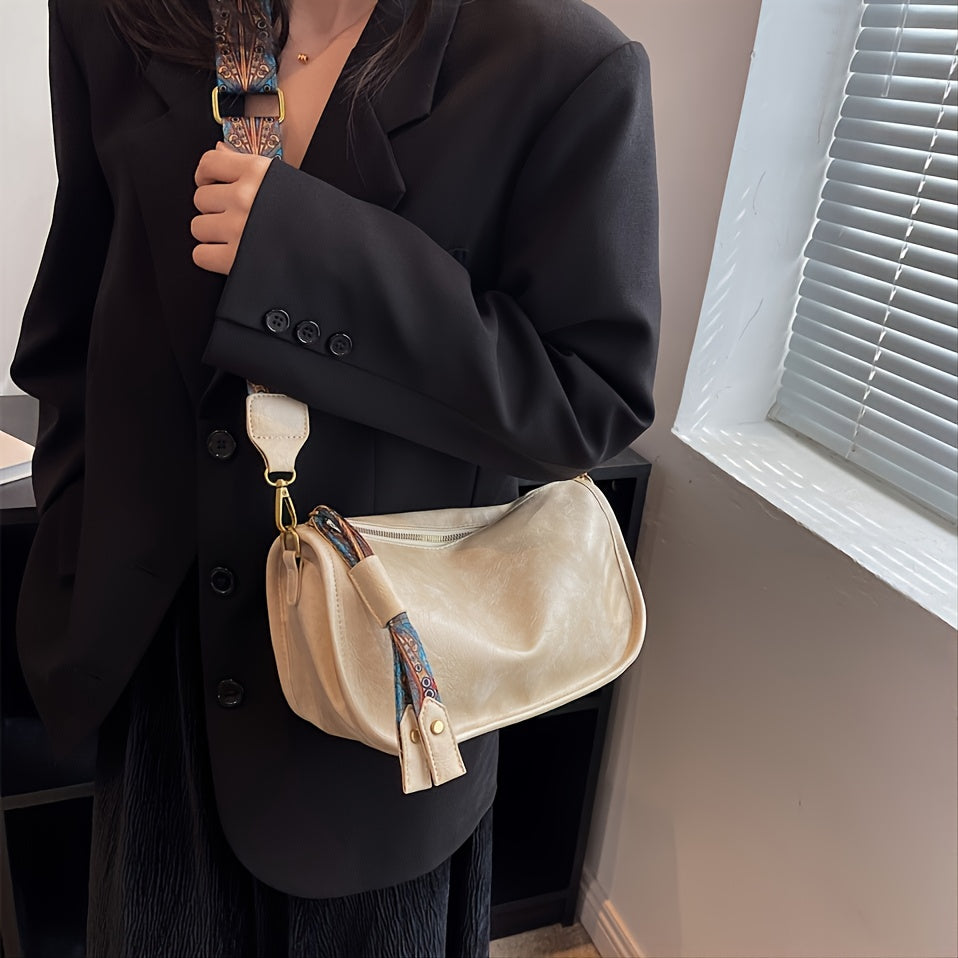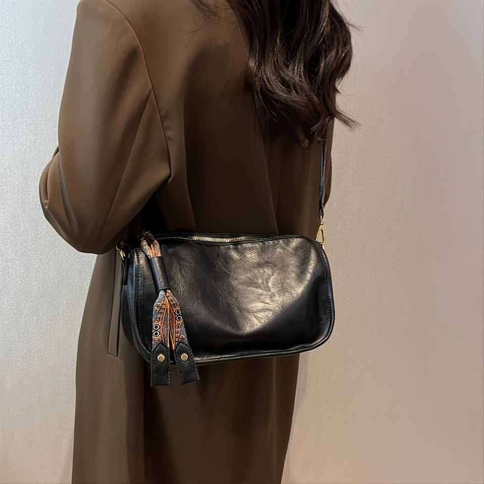 レトロスタイル ショルダーバッグ ファスナー付き メッセンジャーバッグ レディース フェイクレザー クロスボディ