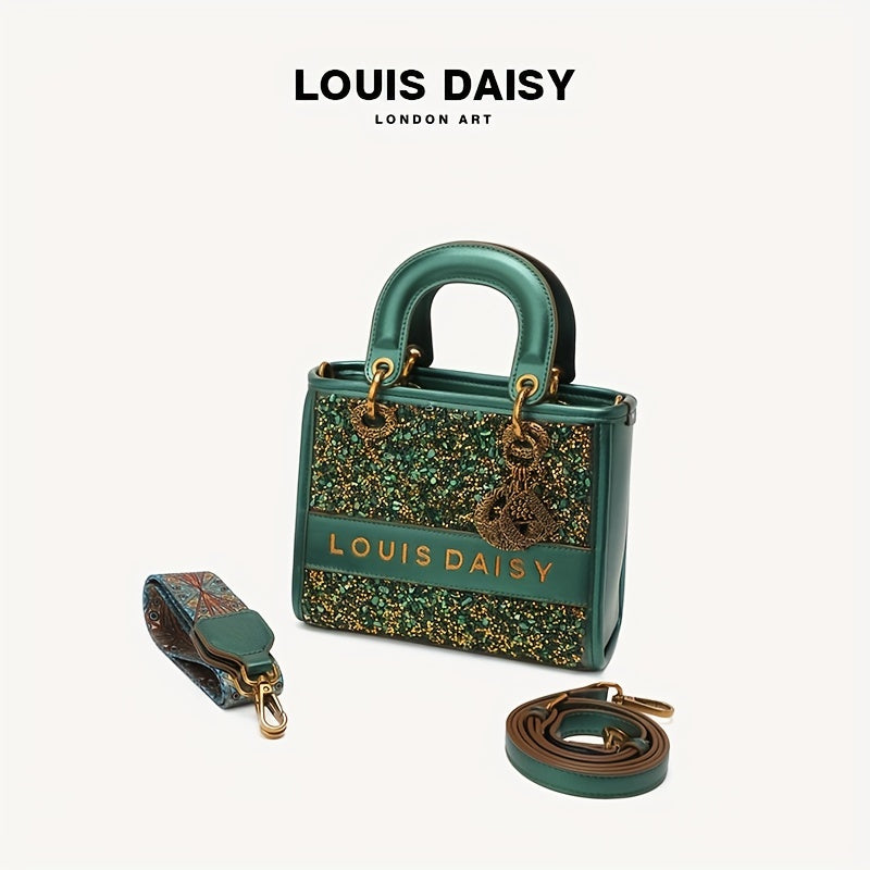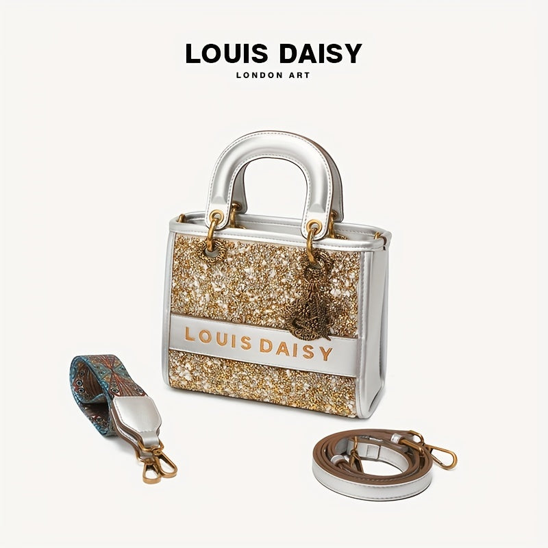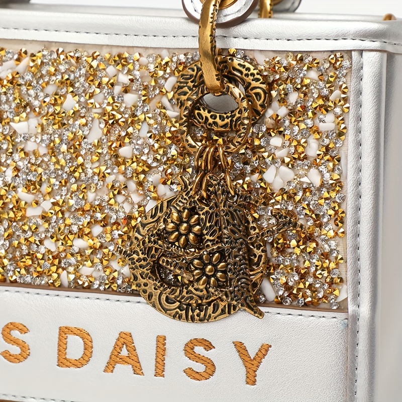 スパンコール トートバッグ レディース トレンド スクエア クロスボディ ヴィンテージ サッチェルバッグ ペンダント付き