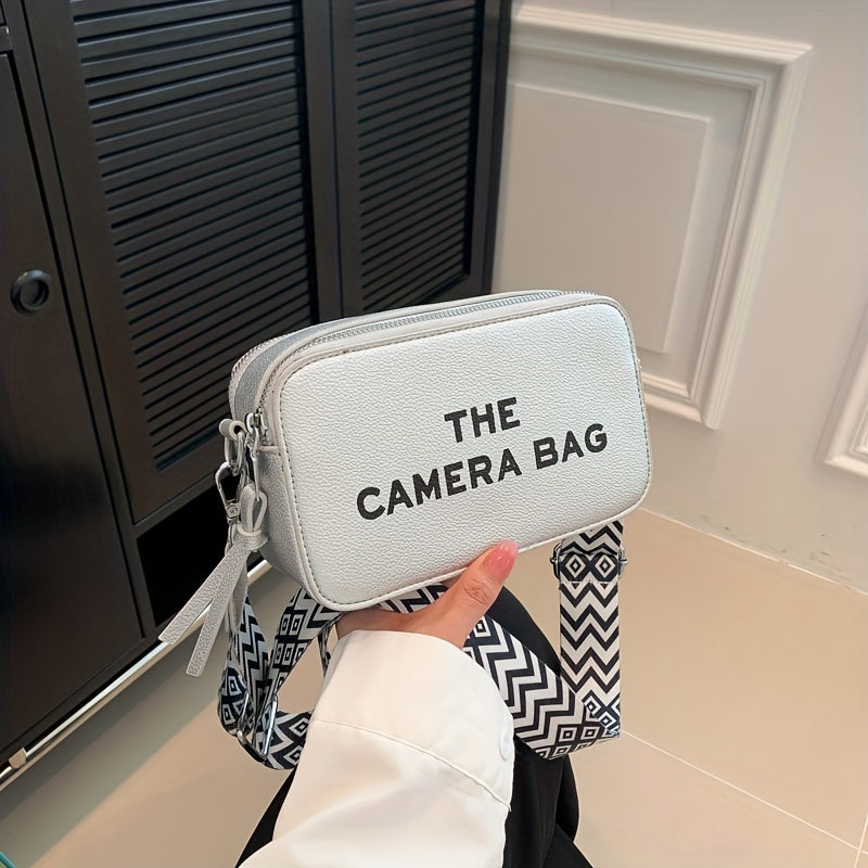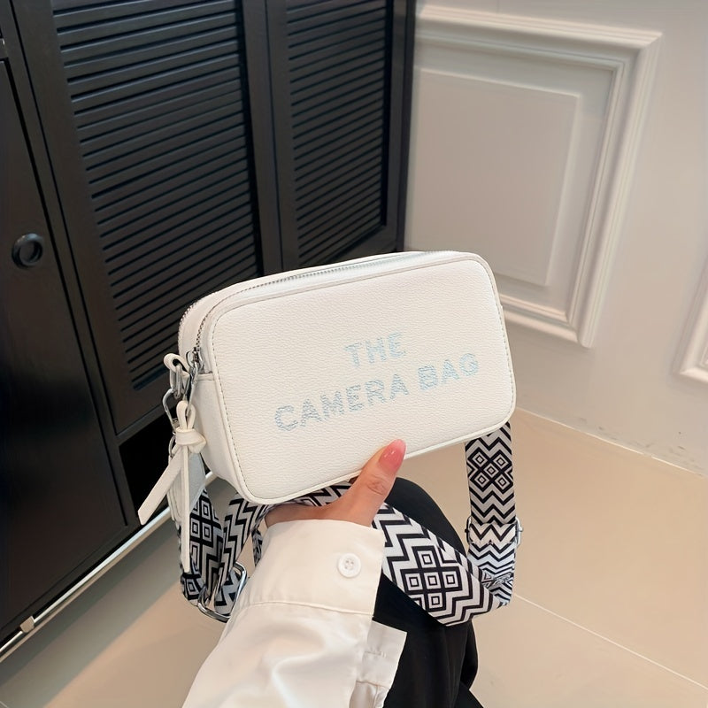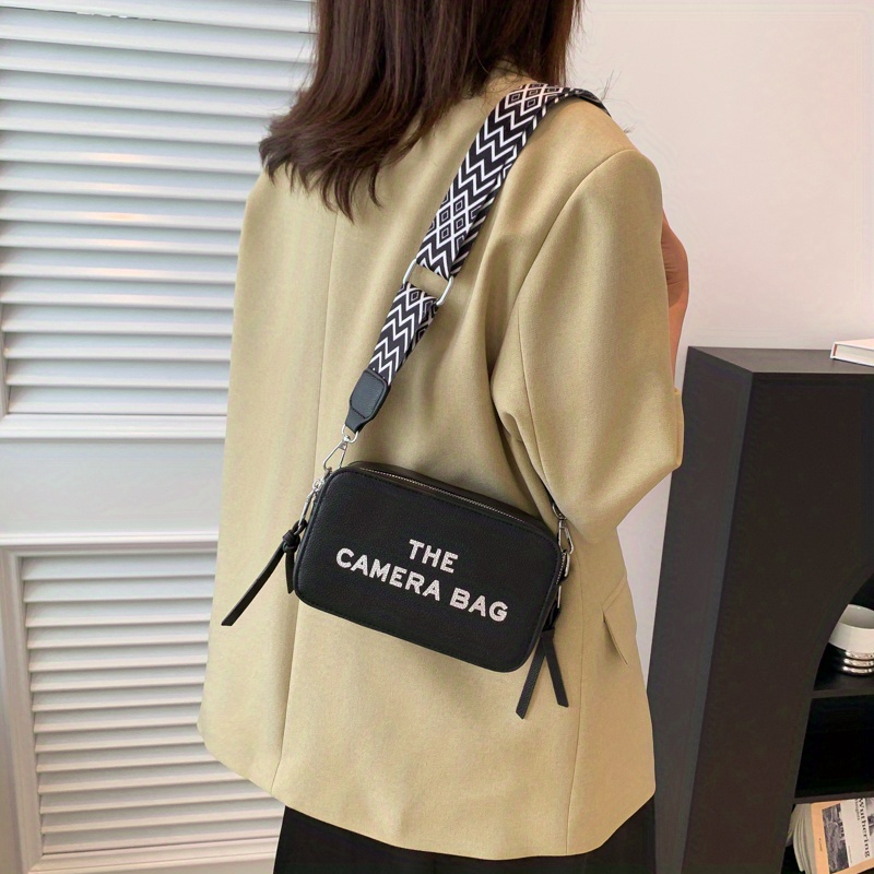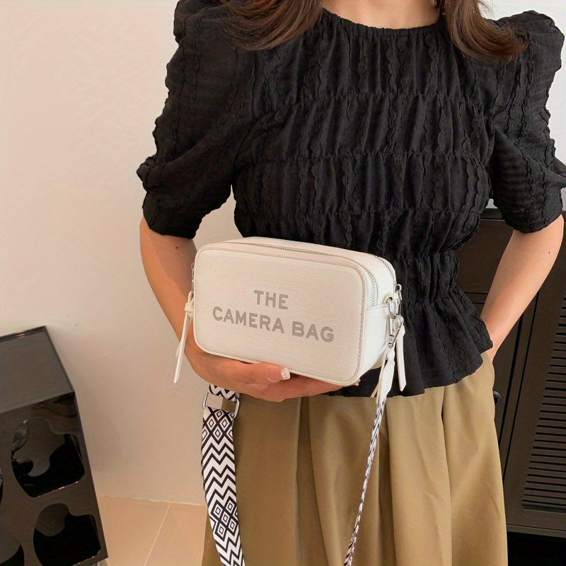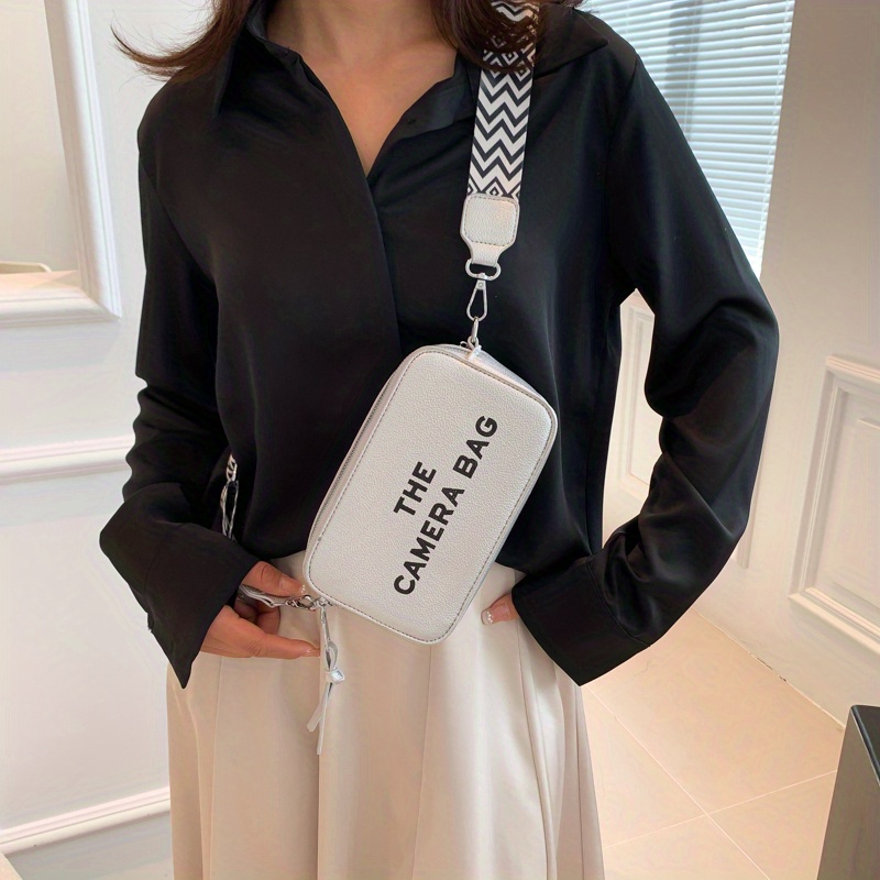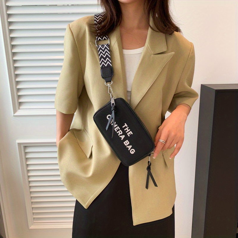シンプルレター柄 ミニスクエア クロスボディバッグ どんなコーデにも合う ファスナーショルダー レディース カジュアルバッグ