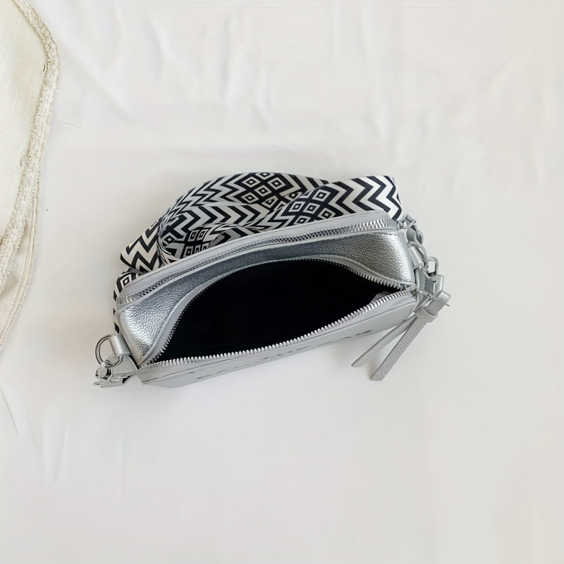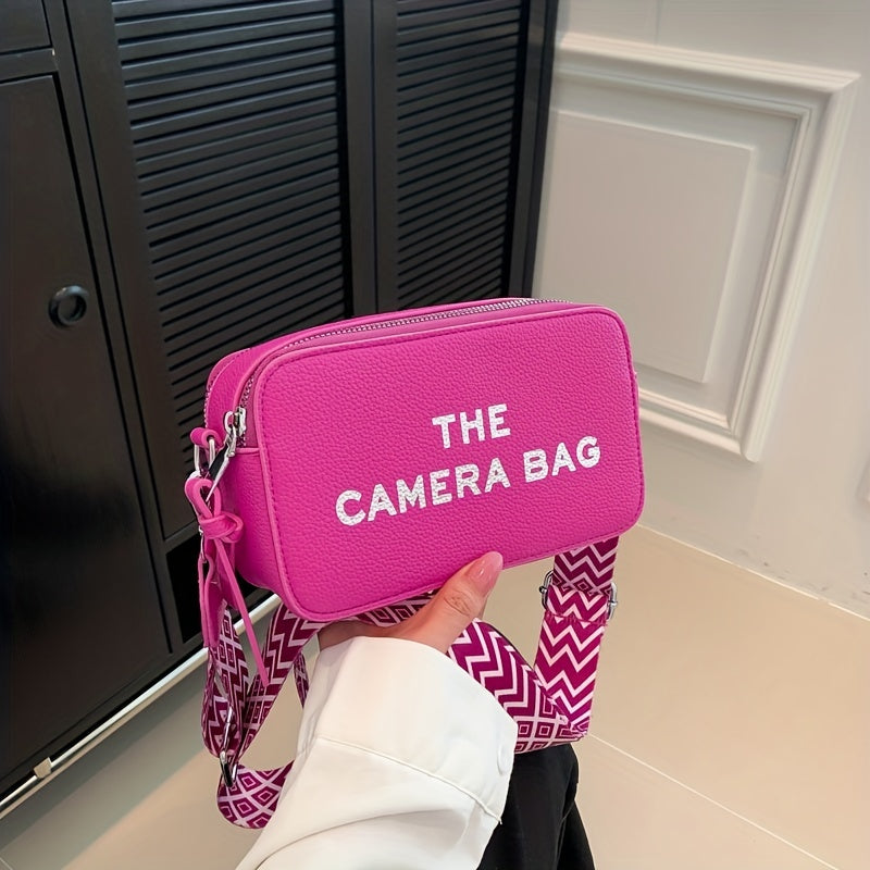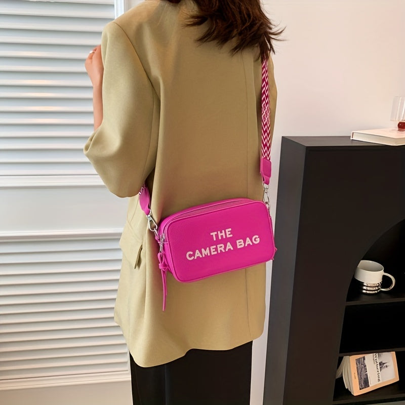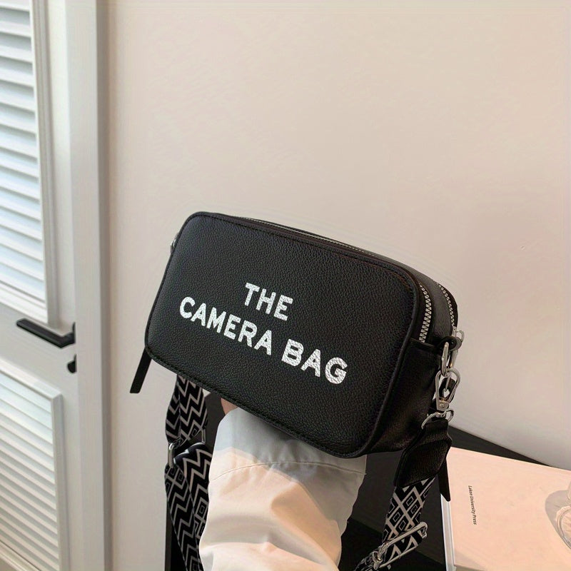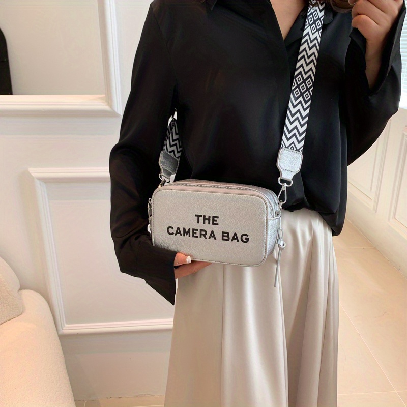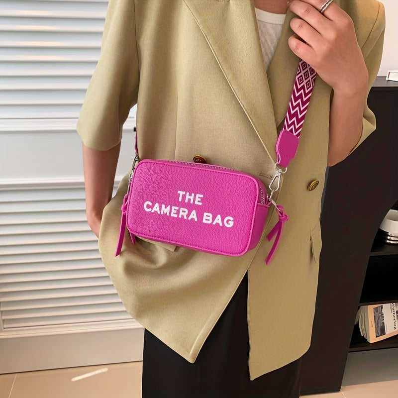 シンプルレター柄 ミニスクエア クロスボディバッグ どんなコーデにも合う ファスナーショルダー レディース カジュアルバッグ