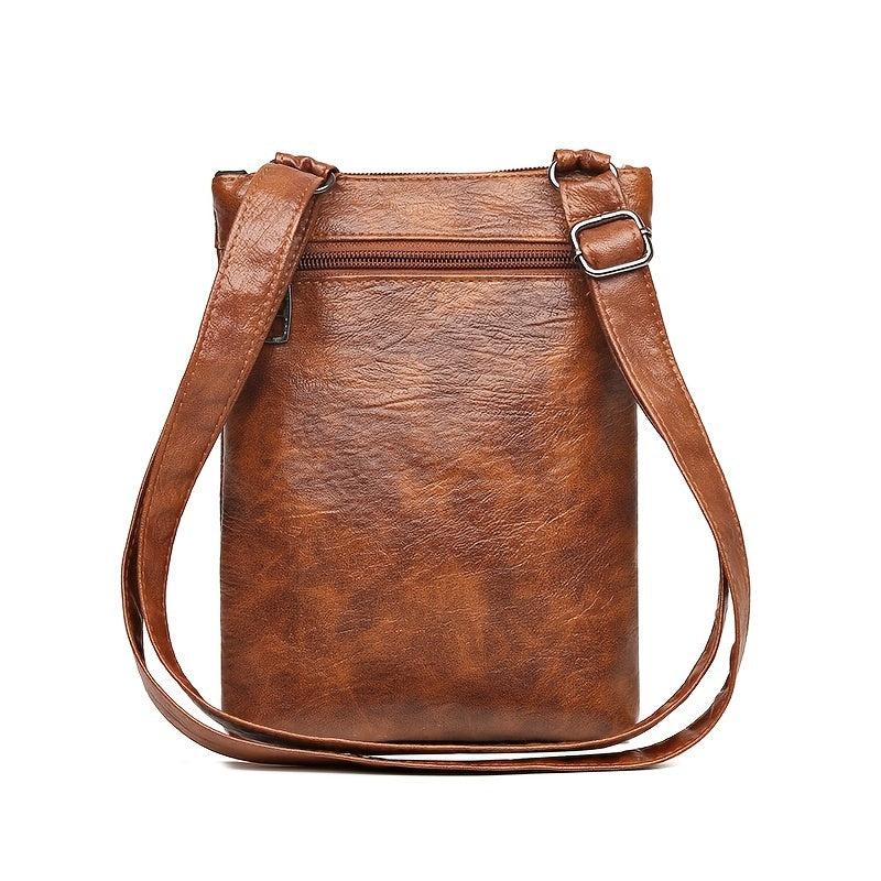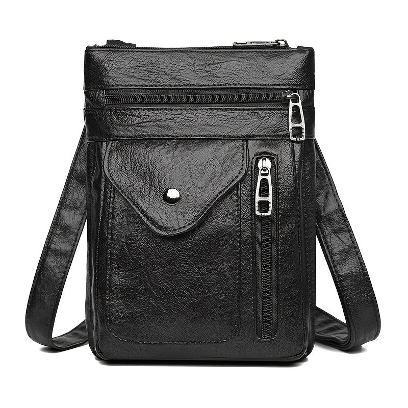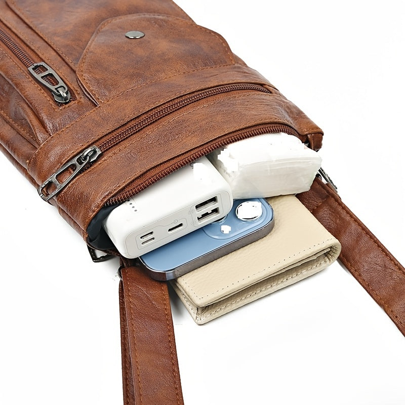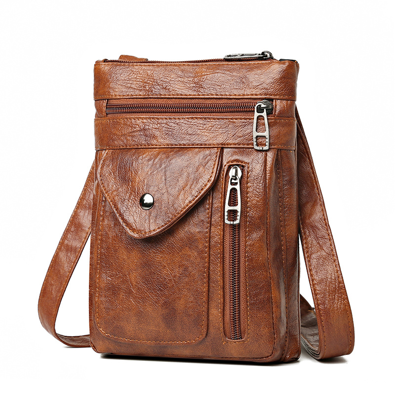 テクスチャー加工 クロスボディフォンバッグ オイルワックス風 フェイクレザー 多ポケット ファスナーショルダー レディース
