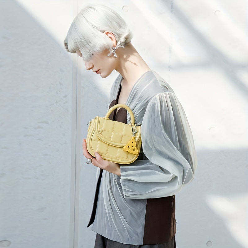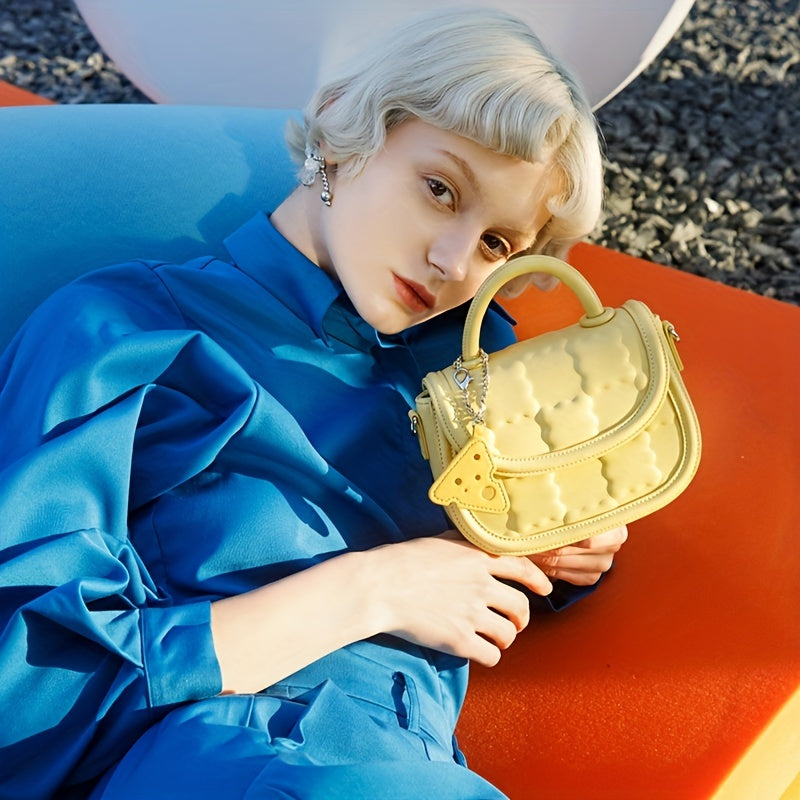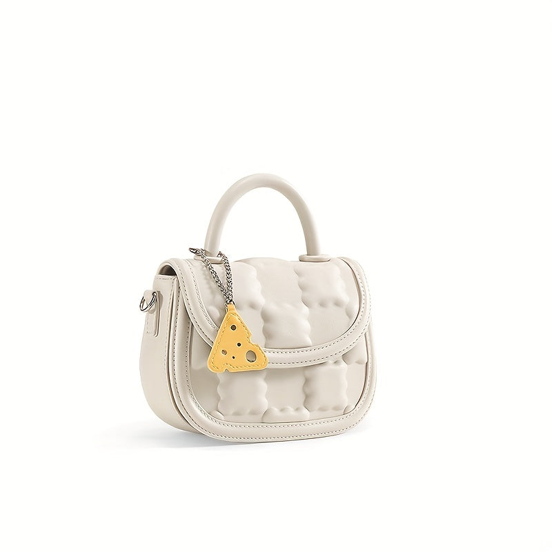 TOUTOU クッキー型押し ハンドバッグ ミニ PUレザー クロスボディ レディース フラップサドルバッグ