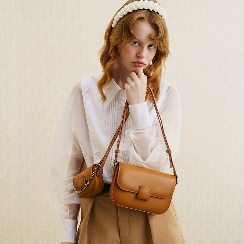 TOUTOU グラデーション ショルダーバッグ クッキーデザイン スクエアハンドバッグ かわいい PUレザー フラップバッグ レディース