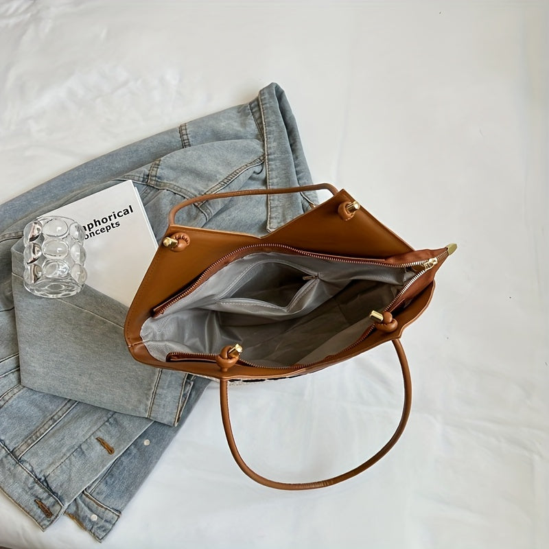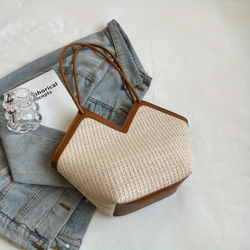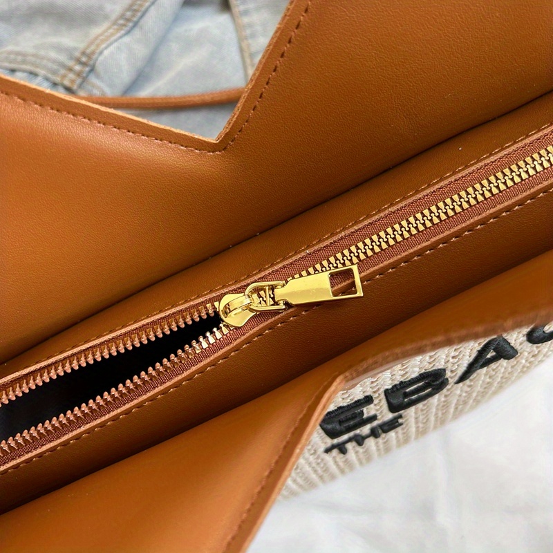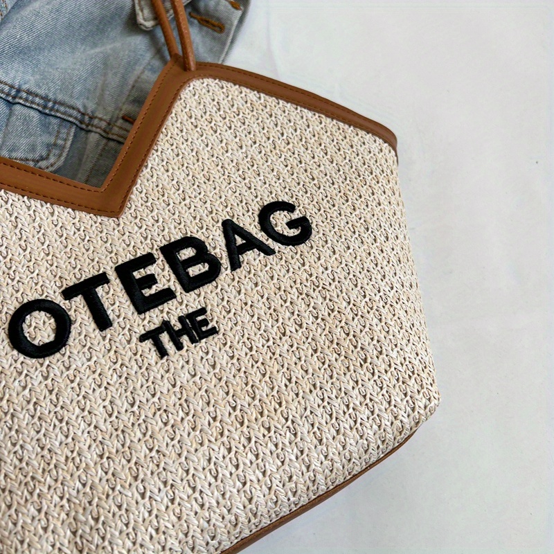 トレンド 編み込み トートバッグ レター柄 ストローショルダーバッグ ショッピング・ビーチに使える レディースバッグ
