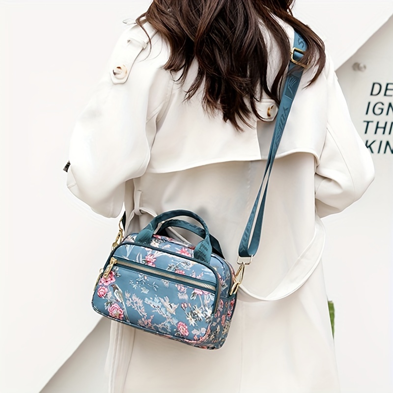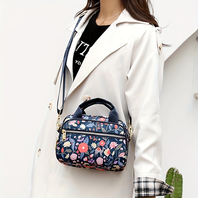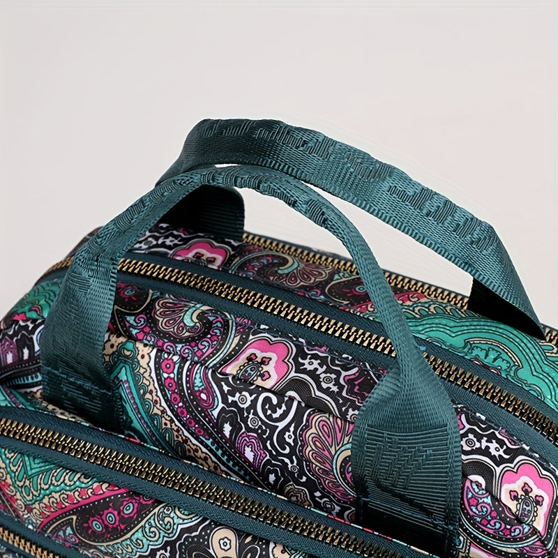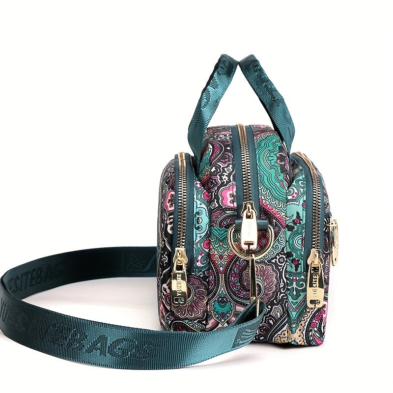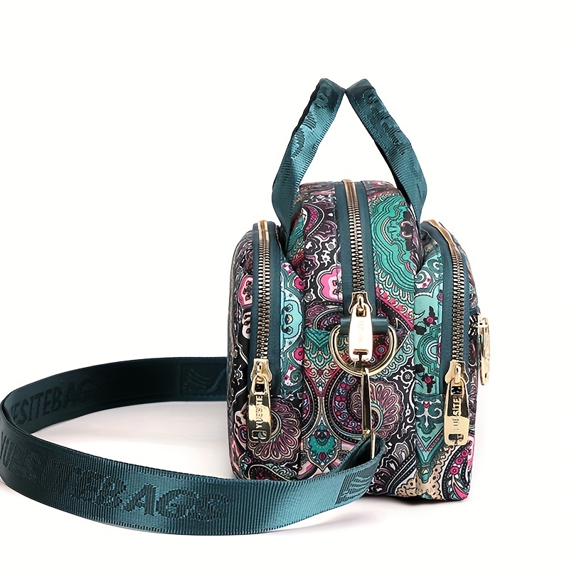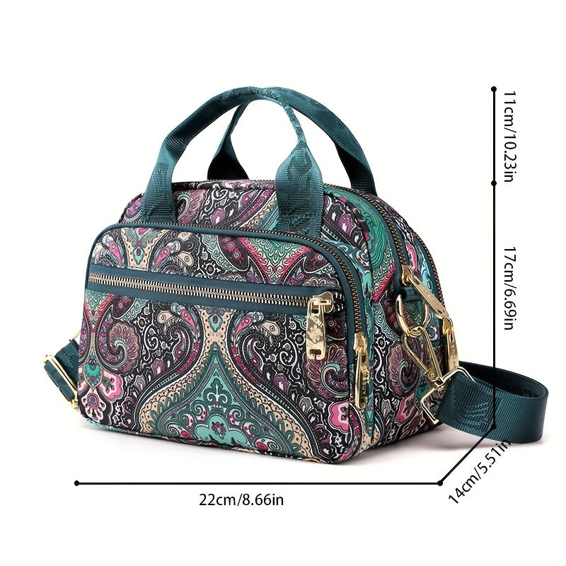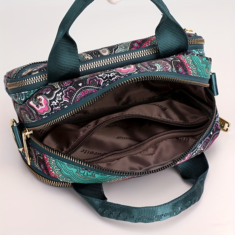 全面ヴィンテージ柄 サッチェルバッグ 軽量 ファスナー収納バッグ 通学にも使える 多用途レディースバッグ