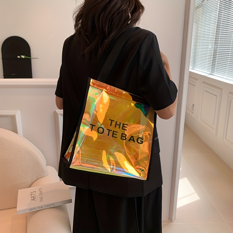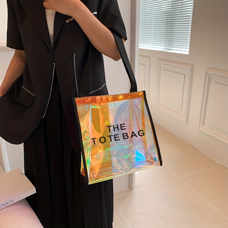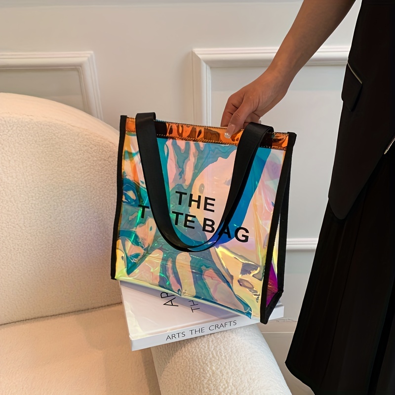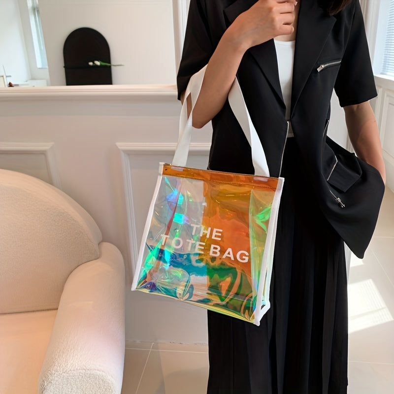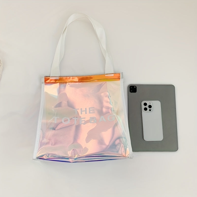 防水 クリアレーザートートバッグ トレンドPVCショルダーバッグ ホログラフィック 夏のビーチバッグ/旅行・アウトドア用